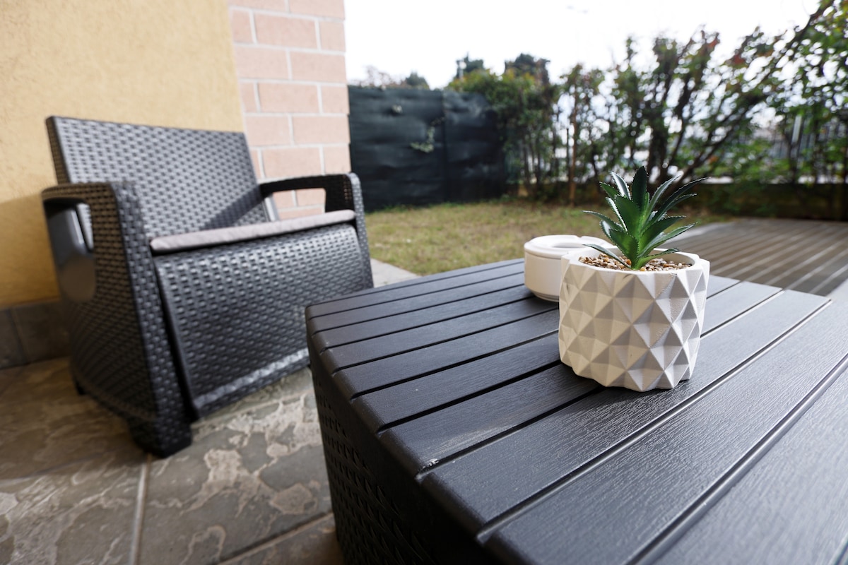 65 평방 미터의 우아한 아파트는 6 개의 유닛으로 구성된 건물의 1 층에 위치해 있습니다. 공항, 오리오 센터, 베르가모 박람회에서 도보로 가까운 거리에 있습니다. 아파트에는 침실 1 개, 소파 베드 2 개, TV, 주방, 욕실, 세탁기가 있는 세탁실이 있으며 에어컨이 설치되어 있습니다. - 숙박세 포함 - 가�� 할인 두 명의 어린이 중 한 명은 무료 - 아침 식사 제공