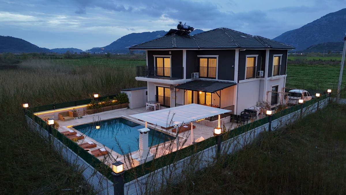 잊을 수 없는 이 휴가를 통해 자연과 다시 교감할 수 있습니다. 전용 보수적인 수영장과 안전한 주차장으로 둘러싸인 전용 빌라. 로프트 층 침실 2개 침실 2개 침실 2개 거실 그룹은 더블 침대, 총 6명 수용 인원 Sarıgerme pilajina, iztuzu pilajina, 백신 베이에서 10분 ~ 15분, 중간에 페티예 30분, 중심지에서 15분 거리에 있으며 레몬 🍋 나무 개인 빌라에서 조용합니다.