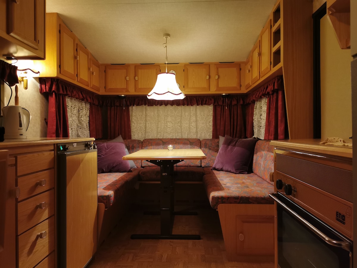 고정된 공간에 캐러밴, 성인 2명, 어린이 2명. 공간이 넓고 햇살이 잘 들어옵니다. 가구와 바베큐가 가능한 전용 정원 섹션. 외부 주차. 드램맨 (30분), 오슬로 (1시간), 투센프리드 (40분). 자가용이 있어야 합니다. 도보로 몇 분 거리에 있는 불쾌한 해안선. 카누는 호스트가 빌릴 수 있어요 주말에는 버스가 거의 없기 때문에 개인 차량이 있어야 합니다. 샤워기와 변기가 있는 대형 욕실, 4인용 장비가 있는 주방, 더블 침대로 만든 라운지. 침구와 수건을 직접 가져오셔야 합니다. 이불과 베개는 마차 안에 있어요