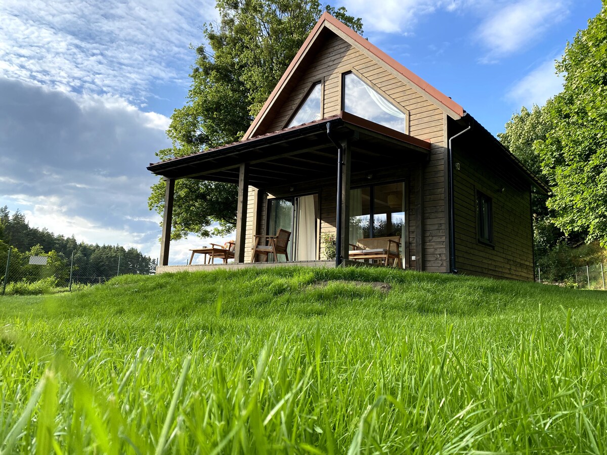 Nowoczesny, drewniany dom całoroczny na Mazurach. Komfort dla 8 osób, 2 sypialnie, ogród, taras, grill, Wi-Fi, Netflix, SUP, rowery, miejsce na ognisko. Blisko jeziora, lasów i tras rowerowych. Idealny na relaks w ciszy i naturze. Przyjazny dzieciom i małym zwierzętom.