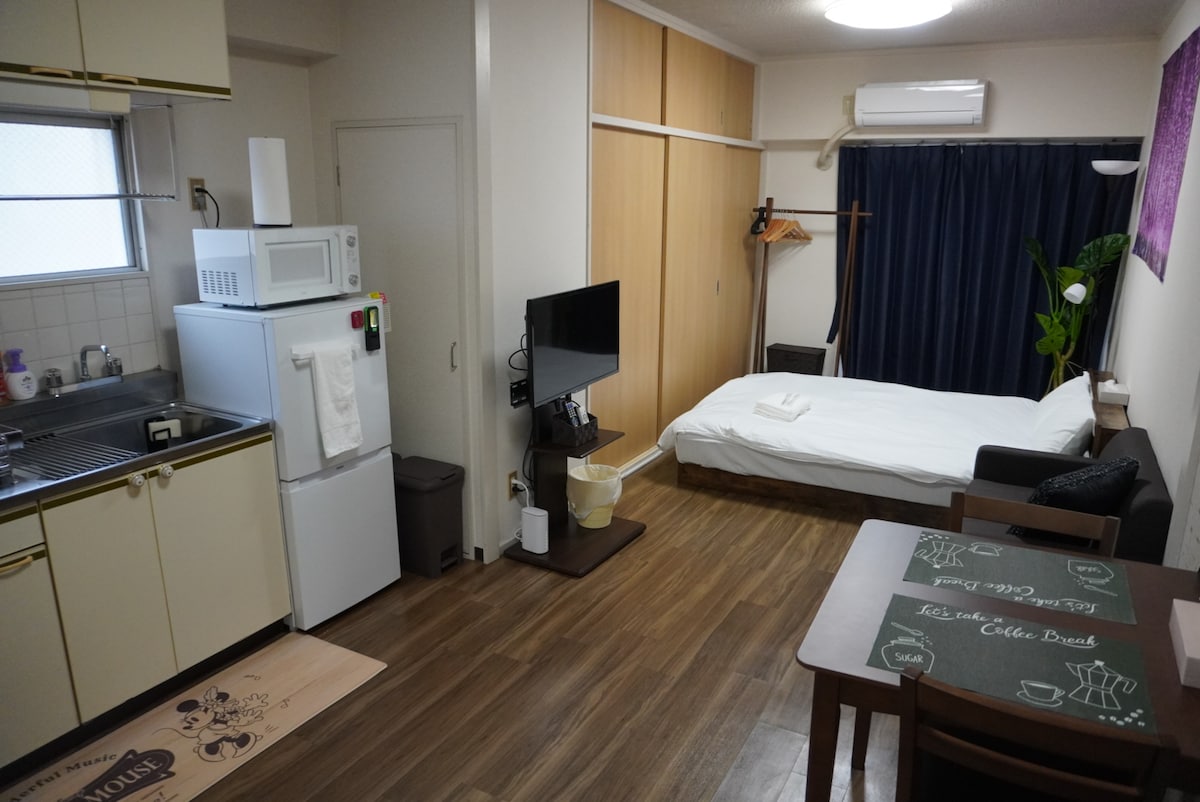 방, 주방, 목욕탕, 화장실이 분리되어 있습니다.장기투숙에도 추천하는 객실입니다.숙박에 필요한 모든 편의시설을 갖추고 있어 급하게 머무르더라도 안심하고 머무르실 수 있습니다. 얼굴타월, 목욕타월, 샴푸, 린스, 바디워시, 칫솔 등 편의시설이 갖춰져 있습니다. 시설에는 난방, 세탁기, 세탁기, 드라이기, 헤어드라이기, 헤어드라이기, 세탁세제, 옷걸이, 난방, 냉방 에어컨, 옷걸이, 난방, 에어컨, 에어컨, 주방, 냉장고, 전자레인지, 전기포트, 전기포트, 전기포트, 전기포트, 전기포트, 전기포트, 전기포트, 전기포트, 조리도구 (후라이팬, 냄비, 냄비, 칼, 칼, 도마, 젓가락), 접시, 유리잔, 식기, 와이파이, TV 등 체크인: 오후 15:00 부터 일찍 입장하고 싶으시면 오후 13:00 부터 추가 2,000엔으로 입장하실 수 있습니다. 체크아웃: 늦은 시간에 대한 추가 수수료가 부과됩니다. (오후 10시부터 12시까지 추가 요금이 부과됩니다.사전예약 필수입니다.)