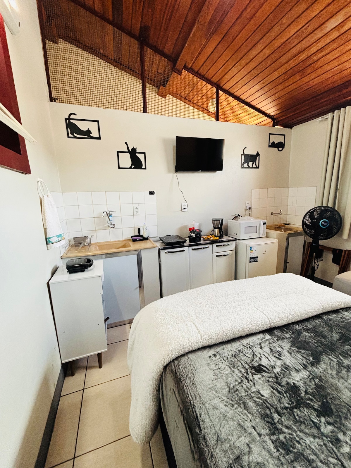 Studio charmoso, não compartilhado, localizado ao lado da casa principal, com entrada independente! Rua com fluxo de veículos e pedestres, bairro tranquilo e seguro. A 2 km do Centro Histórico, 3 min de padaria, restaurante, lanchonete, bar e a 5 min de supermercado, farmácia, lojas e ponto de ônibus. Oferecemos roupas de cama/banho, microondas, frigobar, misteira, cafeteira, fogão de indução. Comporta até 3 hóspedes, com uma cama de casal e uma de solteiro.