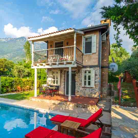Villamız; Fethiye'nin en popüler tatil bölgesi Ölüdeniz ovacık mevkiinde,sessiz ve sakin bir bölgede bulunmakta olup yürüme mesafesinde eğlence mekanları bulunmaktadır.Taş mimari ve ahşabın muhteşem uyumu ile tasarlanmış olan kiralık villamız otantik yapısı ile sizlere unutamayacağınız bir tatil imkanı sunmaktadır. Ölüdeniz'e 3 km uzaklıkta, Hisarönü barlar sokağına ise 1 km yürüyüş mesafesindedir.Konaklama süresince elektrik,su,wifi,tüpgaz,giriş temizliği fiyata dahildir.