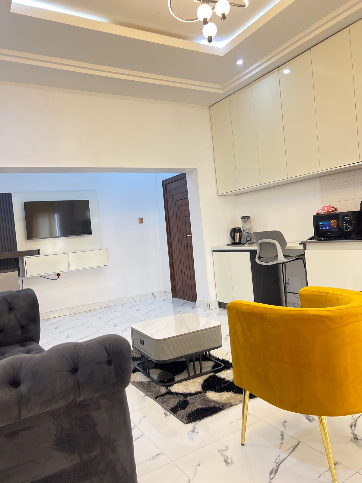 AUDEMARS Luxury One-Bedroom Suite Enjoy comfort and elegance in this fully furnished one-bedroom apartment. It features a spacious ensuite bedroom, stylish living room, smart TV, fast Wi-Fi, and a fully equipped modern kitchen. Benefit from 24/7 power supply and WHO-standard treated water. Guests also enjoy access to the pool, rooftop lounge, bar, snooker, and dart area. Secured with exterior CCTV and armed security for your peace of mind. Perfect for business or leisure stays.