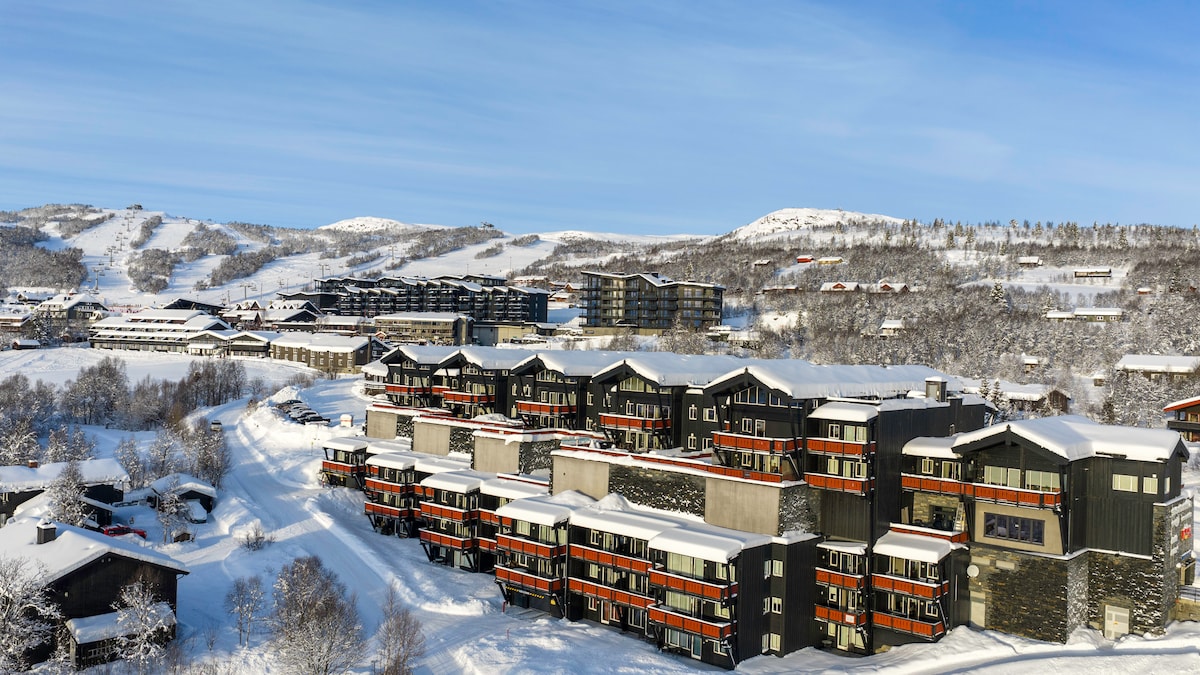 Nyt en stilfull opplevelse på et sted med sentral beliggenhet. Velutstyrt og koselig leilighet med alt du trenger for noen hyggelige dager på fjellet. Her kan du parkere bilen i oppvarmet garasje. Matbutikk, sportsbutikk, treningssenter og vinmonopol i samme bygning. Kun 10 meter til langrennsløyper, 300 meter til alpinanlegg. Flere flotte, gode restauranter og butikker i umiddelbar nærhet.
