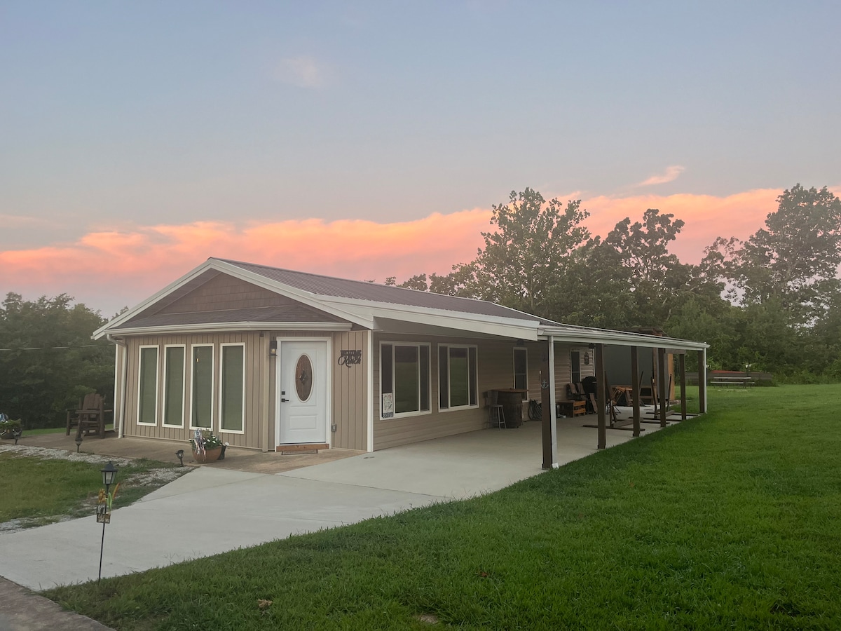 This pristine cabin is nestled in between the red oaks, and overlooks the rolling hills of an operating cattle farm. Relax with the whole family at this peaceful place to stay. If you’re looking for a weekend of R&R, look no further than Ozarks Hideaway! This cabin will comfortably sleep four people, and the memories will make them selves! It is equipped with a full kitchen, laundry room, barbecue grill, and fire pit. Cloud 9 Ranch is approximately 3 miles away,floating the river 4 miles away.