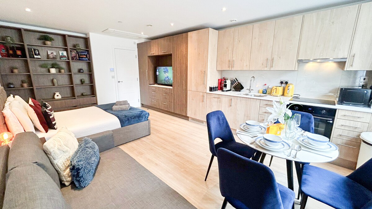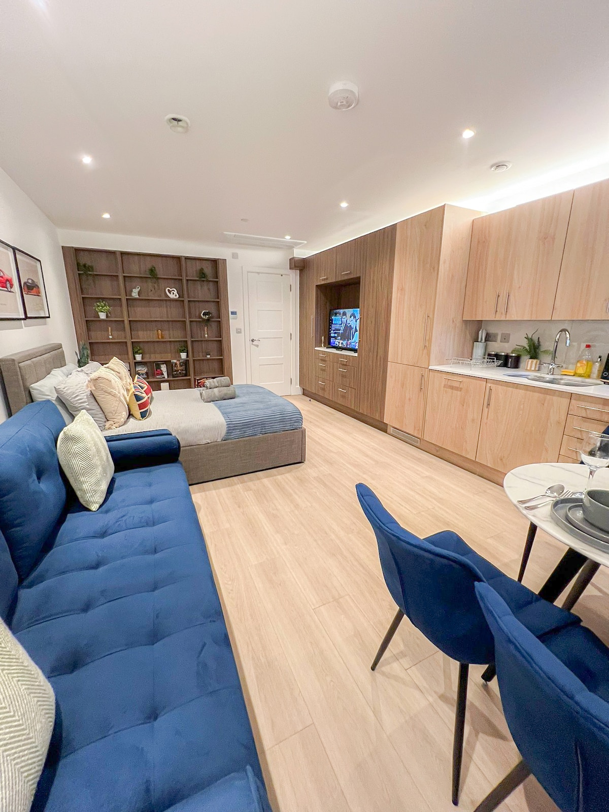 Experience luxury in our beautifully renovated studio in Chelsea’s most coveted address. Sink into our premium double bed with hotel-quality linens after exploring nearby King’s Road boutiques and world-class museums. The sleek kitchen and modern bathroom offer all comforts of home with added elegance. Just minutes from Sloane Square station, you’ll enjoy the perfect blend of sophisticated living and convenient access to London’s finest attractions. Your stylish Chelsea retreat awaits.
