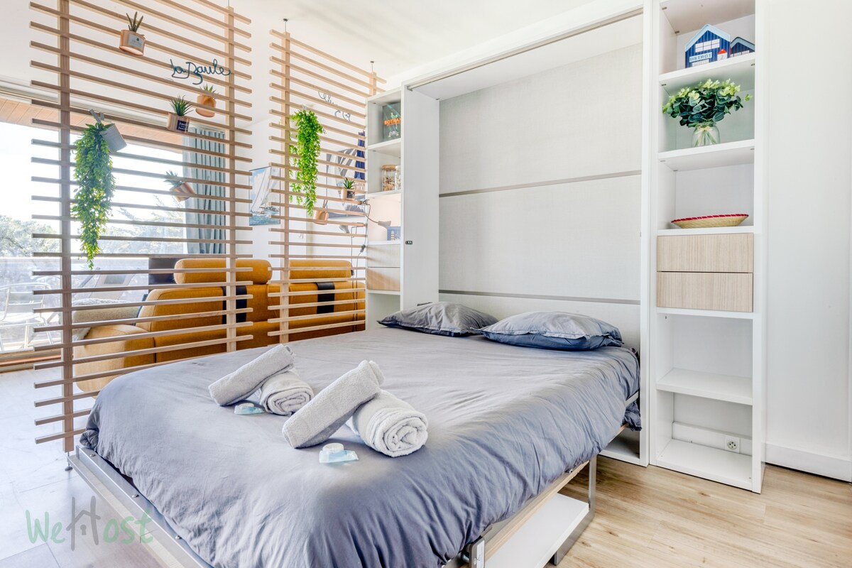 DUPLEX « LE PIN PARASOL» | LA BAULE | 2 CHAMBRES | 4 PERS | PARKING GRATUIT 📍Idéalement situé à seulement 200m de la gare de La Baule et à seulement 900m de la plage, vous serez également à 2 min à pied de l’avenue du Général Degaulle, la plus grande avenue commerçante de La Baule. 🏖️ Venez déposer vos valises dans ce ravissant duplex refait à neuf, moderne et joliment décoré, niché dans les pins, vous profiterez de notre jolie terrasse parfaitement exposée. Moments inoubliables garantis !