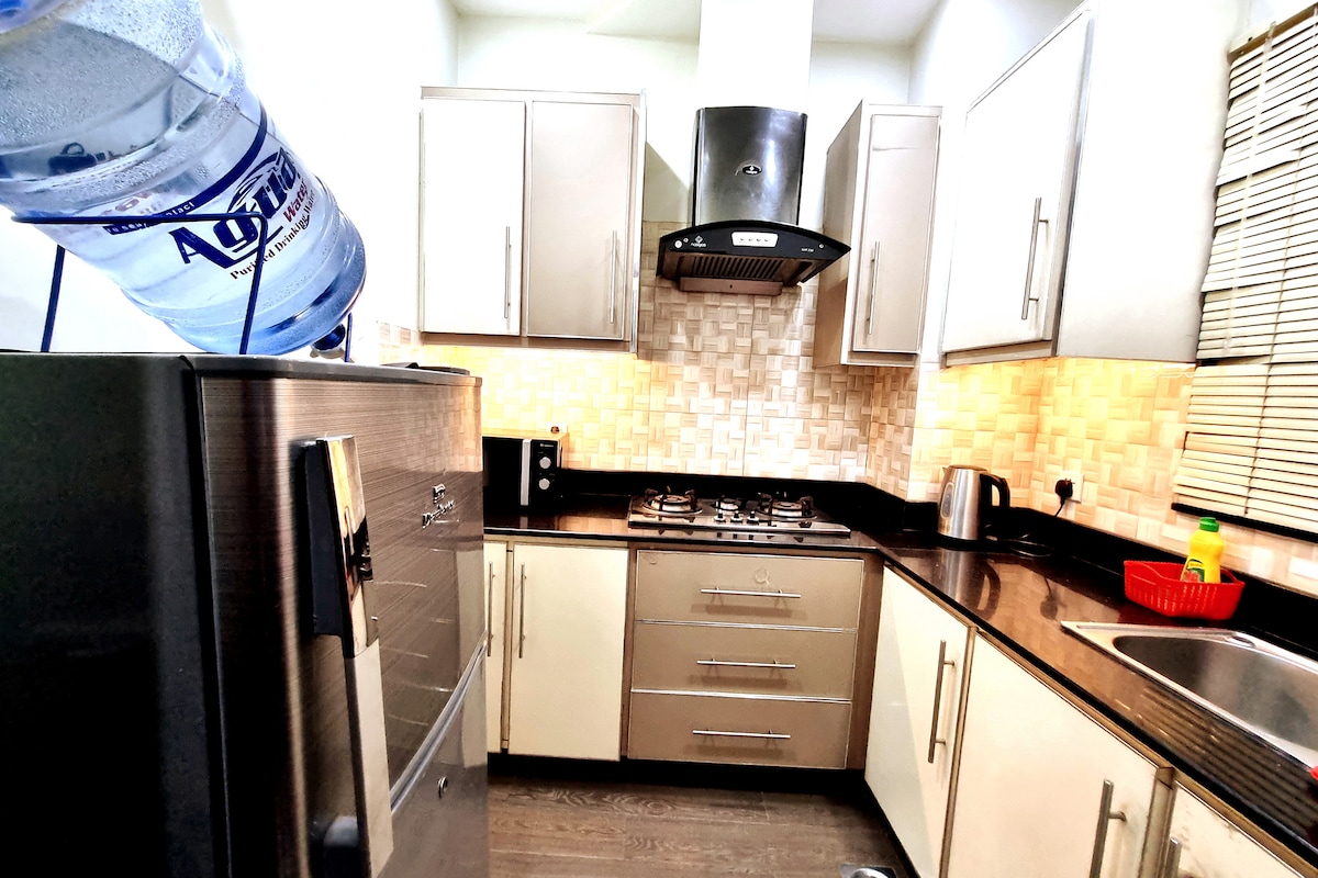 One-bed hotel room with a kitchen. Safe and secure appt. LUXURY ACCOMMODATION Relax in style with our elegantly furnished rooms designed for comfort, convenience, and a touch of class. 24/7 ROOM SERVICE Enjoy delicious food and beverages delivered right to your room anytime with our round-the-clock service. Indulge in our luxurious services with Free Breakfast, Haircut and beard, Laundry , Disposable kit, Dry Fruits, Fresh Fruits, Mineral water.These are all complimentary during the stay.
