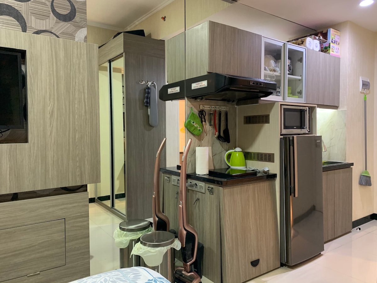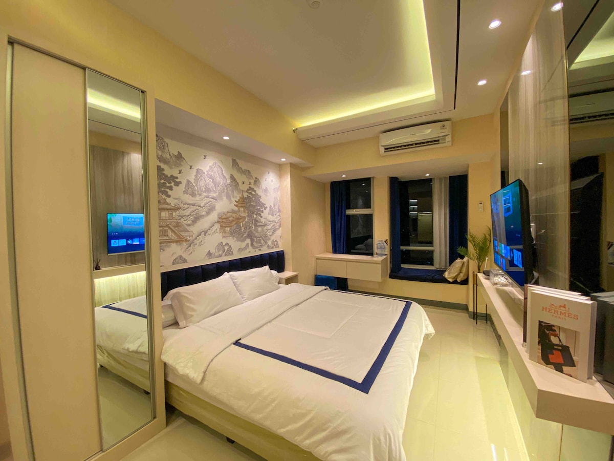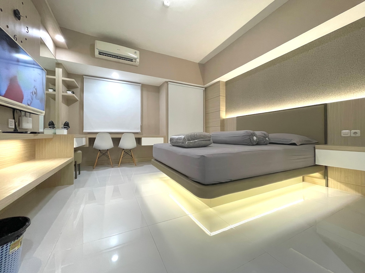 저희 객실은 수라바야에서 가장 큰 쇼핑몰인 파쿠원 몰과 바로 연결되는 탕린 아파트에 있습니다. 저희 객실은 처음에는 전용으로 설계되었기 때문에 매우 집처럼 편안하고 세련됩니다. 포디움 층에 위치해 있어 대부분의 다른 스튜디오룸보다 공간이 넓습니다[29㎡]. 모든 게스트가 헬스장, 수영장, 무료 주차를 이용할 수 있습니다. 이전에 오거나 숙박하는 다른 게스트가 없는 한 체크인 및 체크아웃 시간은 유연할 수 있습니다. 편안하게 숙박을 즐기세요!