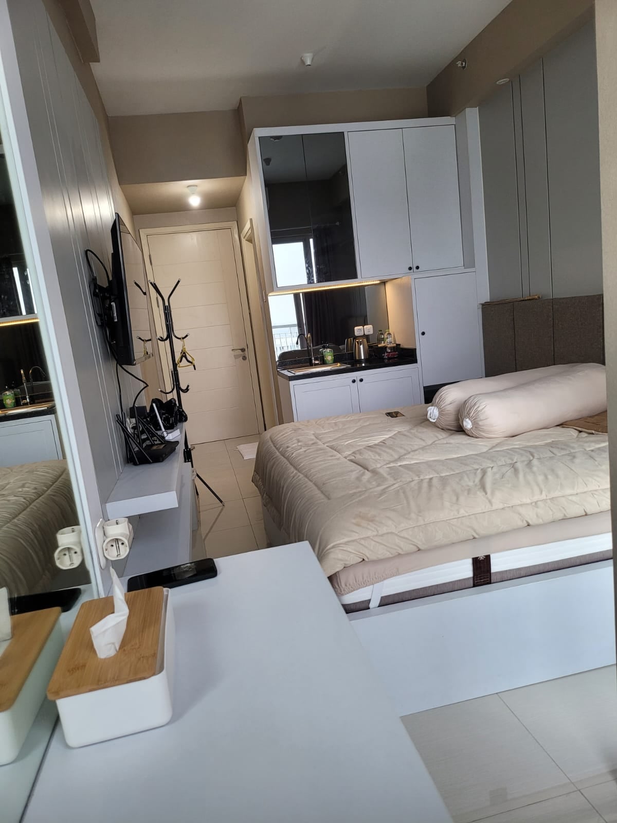 넓고 평온한 숙소에 머물면서 걱정과 근심을 잊어보세요. 타워 탕린 스튜디오 G 사양 및 시설: 라텍스탑이 있는 160x200 침대 온수기 스마트 TV 43인치 안드로이드 11 넷플릭스 와이파이 몰 시티 뷰 8층 에어컨 업무용 책상 다리미 공공 시설: 수영장(1층) 헬스장(1층) 세탁소(1층) 파쿠원 몰 직통(1층) 무엇이든 편하게 문의해 주세요. 08one 5151 two543 four