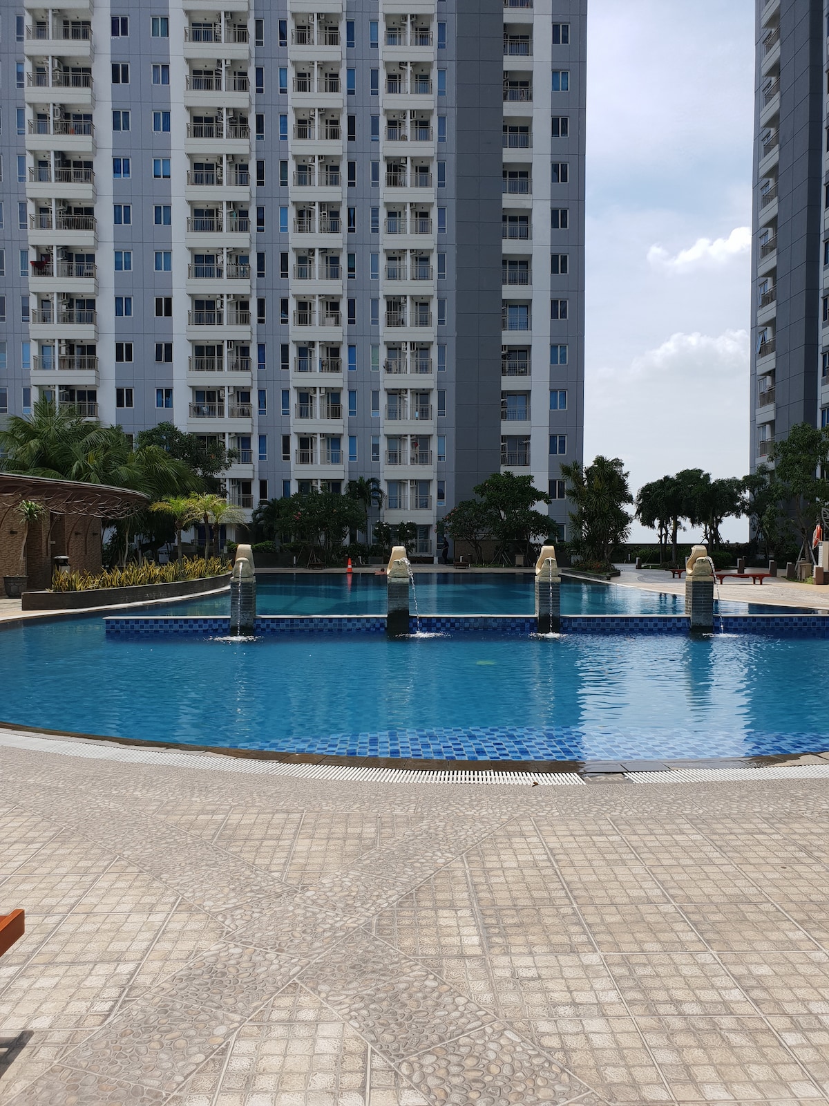 수영장, 헬스장 시설이 있고 수라바야에서 가장 큰 쇼핑몰인 파쿠원 몰과 바로 연결되는 편안하고 멋진 객실입니다. 무료 와이파이, 케이블 및 스마트 TV로 즐거운 시간을 보내세요. 비누와 샴푸가 구비된 샤워실에서 온수를 이용할 수 있습니다. 요리를 할 수 있으며 냉장고와 온수 또는 냉수 정수기가 있어 쉽게 차나 커피를 마시거나 차나 커피를 만들 수 있습니다. 1층에 세탁소가 있으며 객실 아파트에는 다리미와 헤어드라이어가 있습니다.