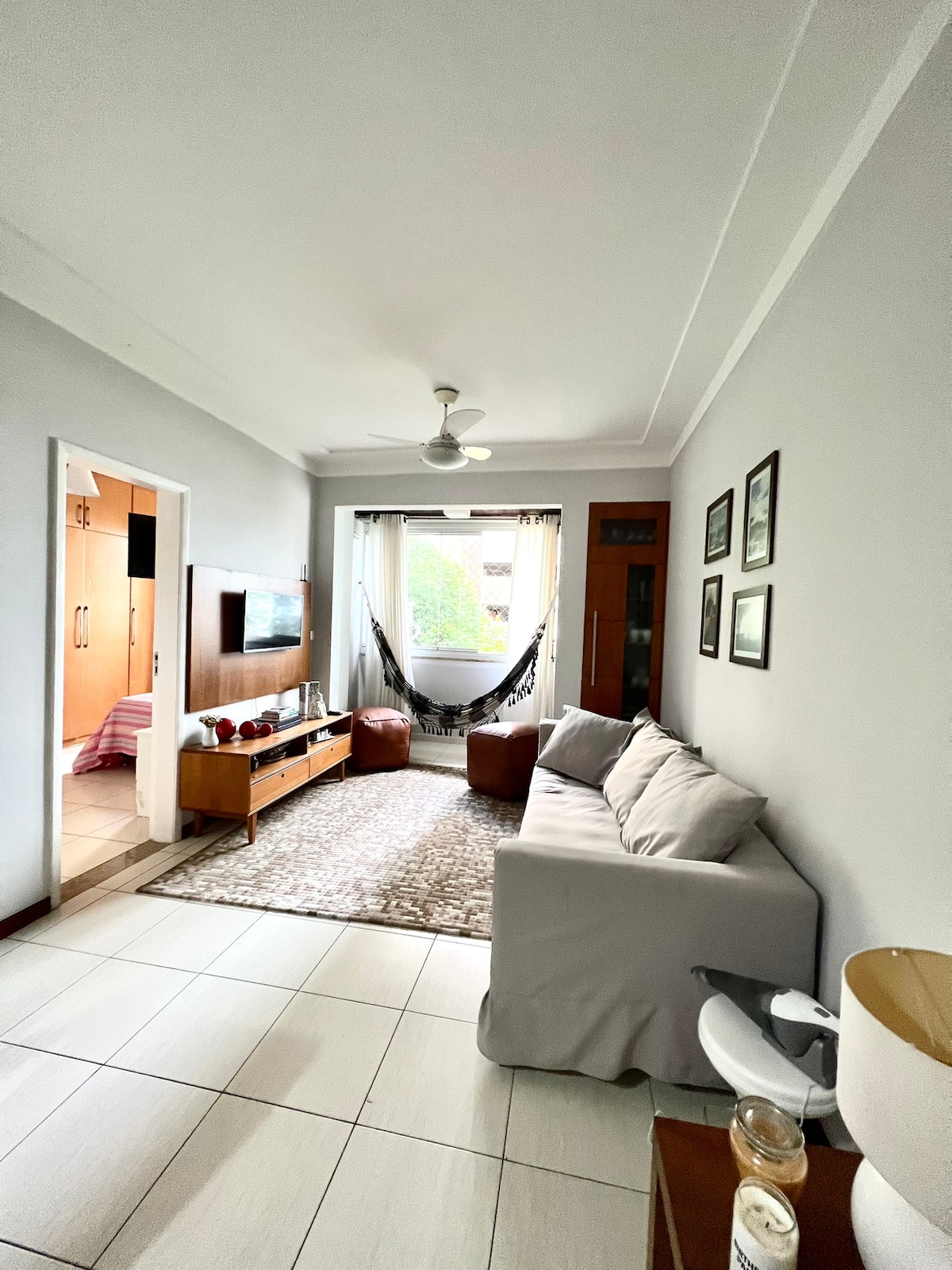 Spacious 1-bedroom apt. in quiet street in walking distance to the beach, shopping mall and public transport. Located on the 6th floor of an apartment building (elevator and private parking). Ideal for vacations, carnival, study and remote work. Espaçoso apto quarto-sala no 6o andar (c/ elevador) de um prédio familiar c/ garagem localizado em rua tranquila perto da praia, do shopping Barra e com fáceis opções de deslocamento. Ideal para férias, carnaval, estudos e trabalho remoto.