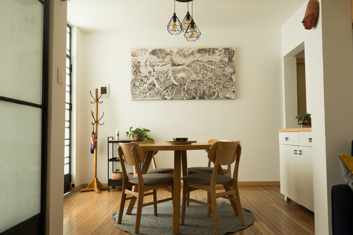 트렌디한 콜로니아 후아레스 중심가에 위치한 이 로프트에서 멕시코시티의 활기찬 문화와 나이트라이프를🌆 즐겨보세요. 라 로마, 콘데사, 게이 조나 로사, 폴랑코에서 몇 걸음 거리에 있어 1인 여행객, 커플 또는 친구에게 이상적입니다. 24시간 현장 보안, 에어컨, 세탁기/건조기, 초고속 인터넷, 도시 전망을 감상할 수 있는 발코니 등의 편의시설을 즐겨보세요. 대중교통 접근 용이하여 탐험하기 편리합니다. 출장이든 여행이든 멕시코시티에서 내 집처럼 편안하게 지내실 수 있는 로프트입니다.
