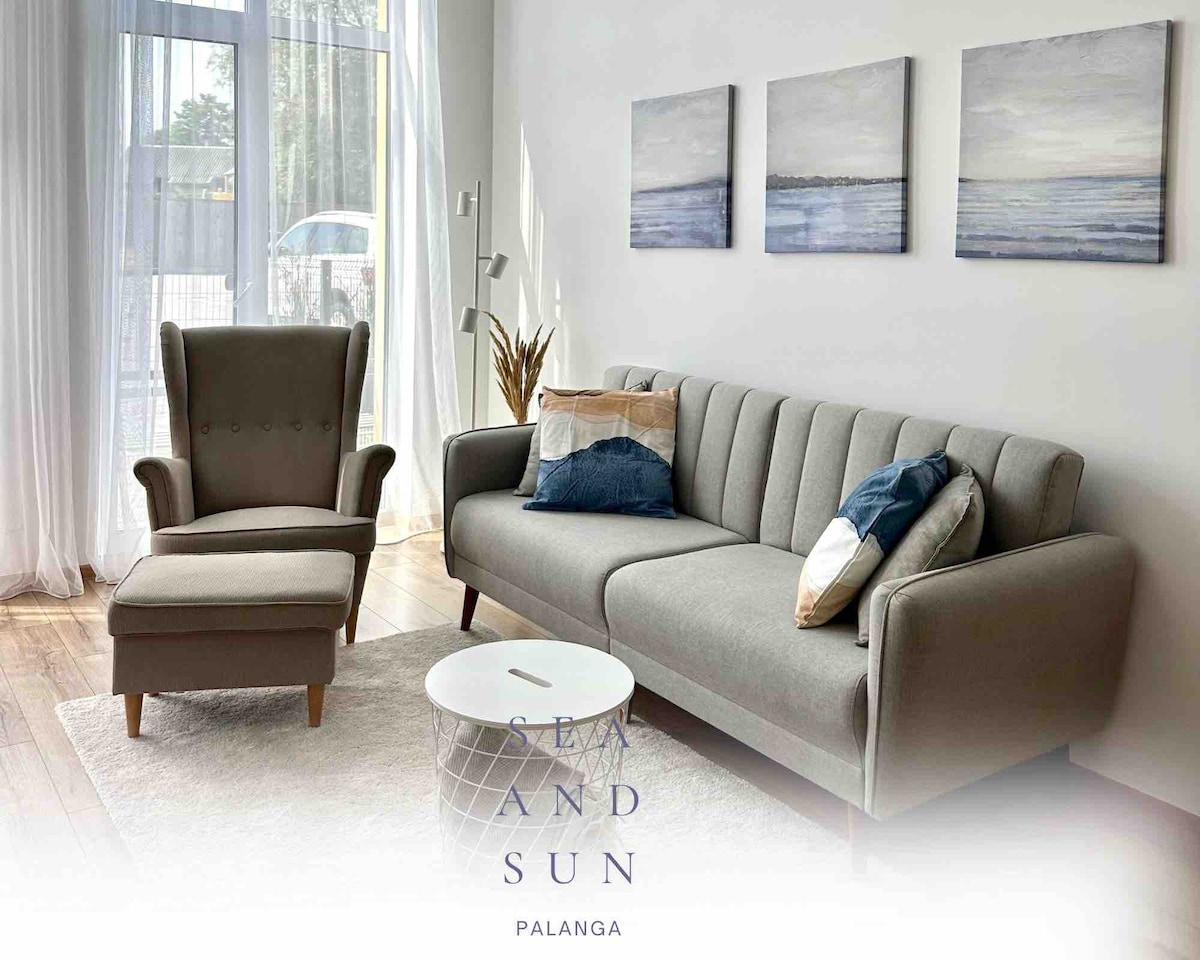 팔랑가 중심부에 위치한 편안하고 조용하며 세련된 아파트 (37 ㎡) 로 주요 관광지와 액티비티에서 단 몇 분 거리에 발코니가 있습니다 (해변 10 ~ 15분)., Basanaviciaus str. - 5 ~ 10분 거리, 시장 - 3분 거리, 베이커리, 상점, 카페, 은행 - 1분). 무료 주차가 가능합니다.