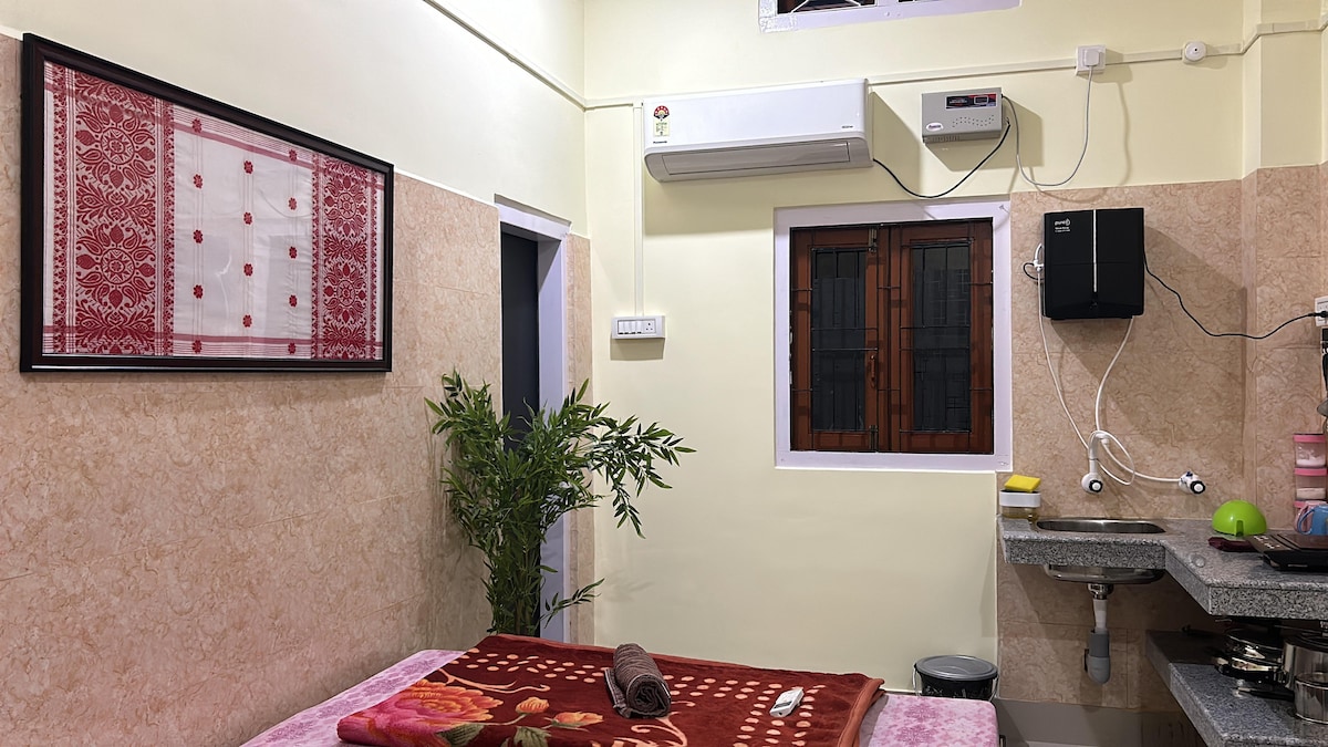 구와하티 LGBI 공항 근처의 에쿰에 오신 것을 환영합니다. 평화로운 주택가에 위치한 우다얀 패스, 아자라에 위치하여 편안한 숙박에 필요한 모든 것을 갖추고 있습니다! 숙소 하이라이트: • 게스트의 조언에 따라 4인치 두께의 매트리스가 있는 퀸사이즈 침대, 워크스테이션 및 옷장 • 냉장고, 필터, 가스레인지, 굴뚝 및 조리 도구가 구비된 주방 • 스마트 TV와 초고속 와이파이가 있는 식사 공간 • 연중무휴 전원 백업 • 간이 온수기가 있는 깨끗한 욕실 • 24시간 연중무휴 CCTV 감시 • 전용 발코니 • 2륜 주차 가능
