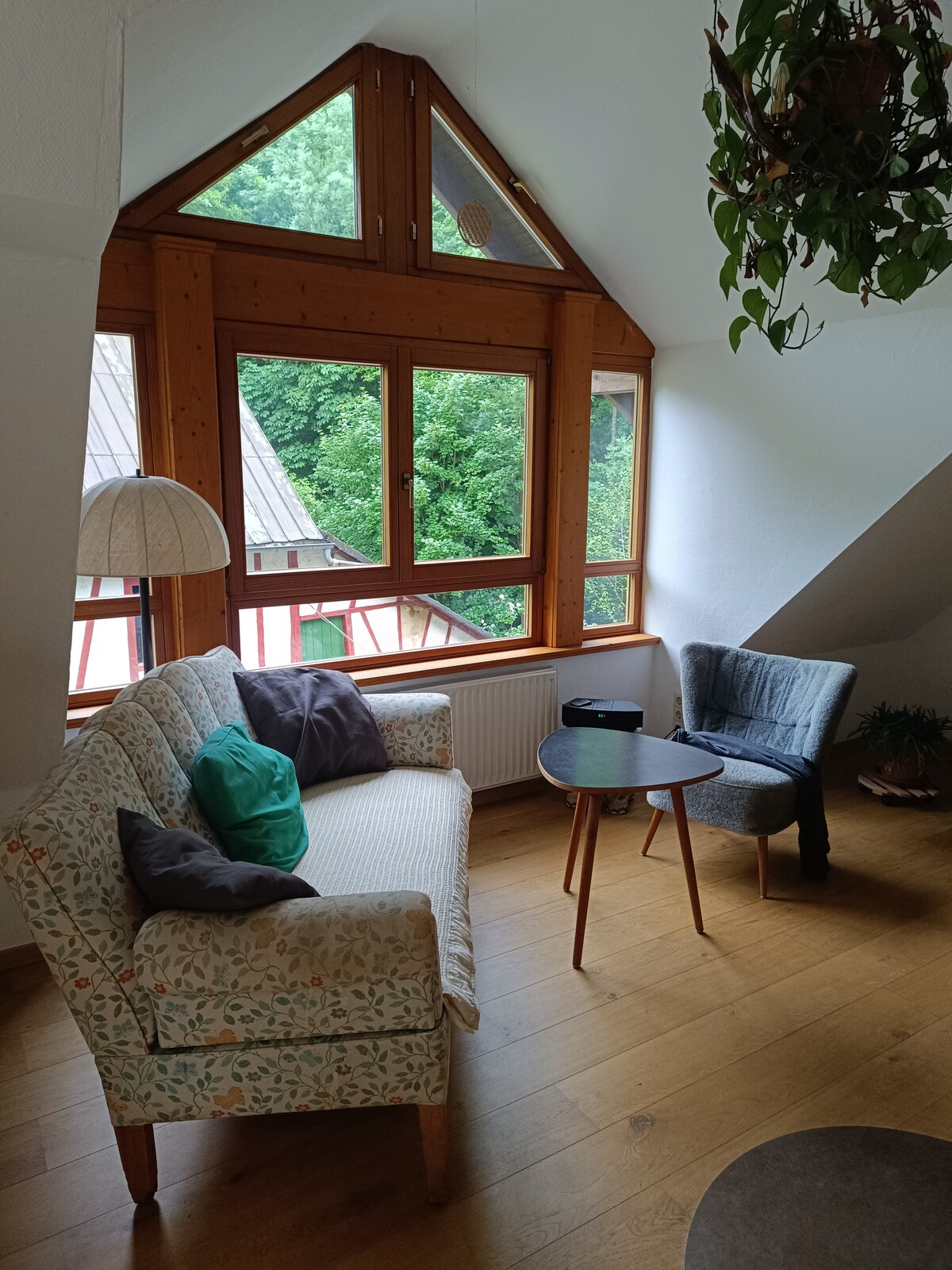 저희 집은 자연과 가깝고 공기와 평온함이 좋습니다. 야외 공간, 정원, 아늑함을 위한 내부 벽난로, 내부에 점토 석고가 있는 오래된 벽에서 기분이 좋아 로프트를 좋아하실 것입니다. 갤러리에는 160cm 너비의 침대와 책상이 있고, 아래층에는 수면 소파가 있습니다. 저희 숙소는 커플, 솔로 여행자, 아이펠판에게 적합합니다. Old meets New is the motto: Old beams also crack, the rain rattles on the roof = advantage and disadvantage?