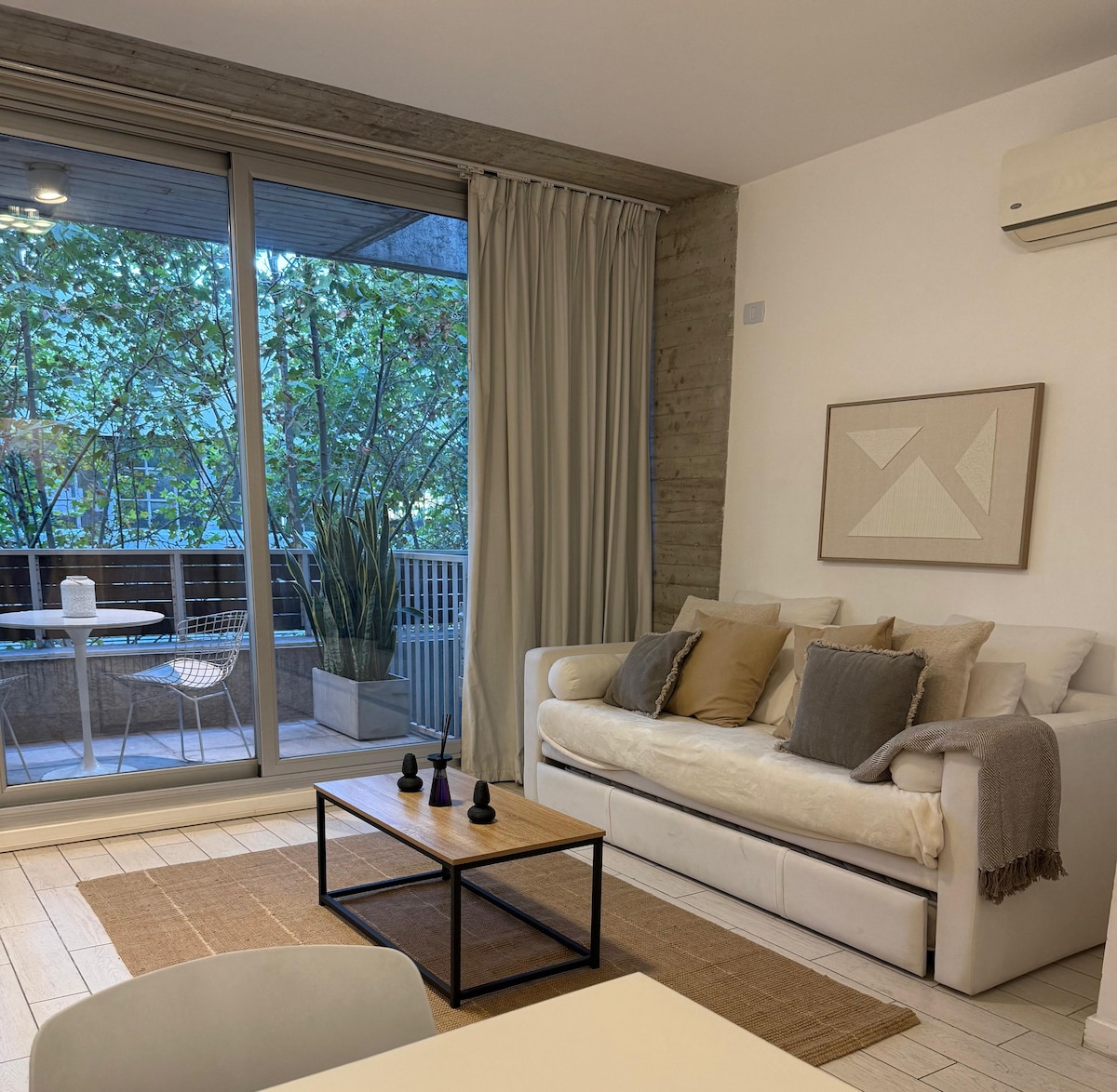 아름다운 2룸 아파트, 나무로 둘러싸인 테라스