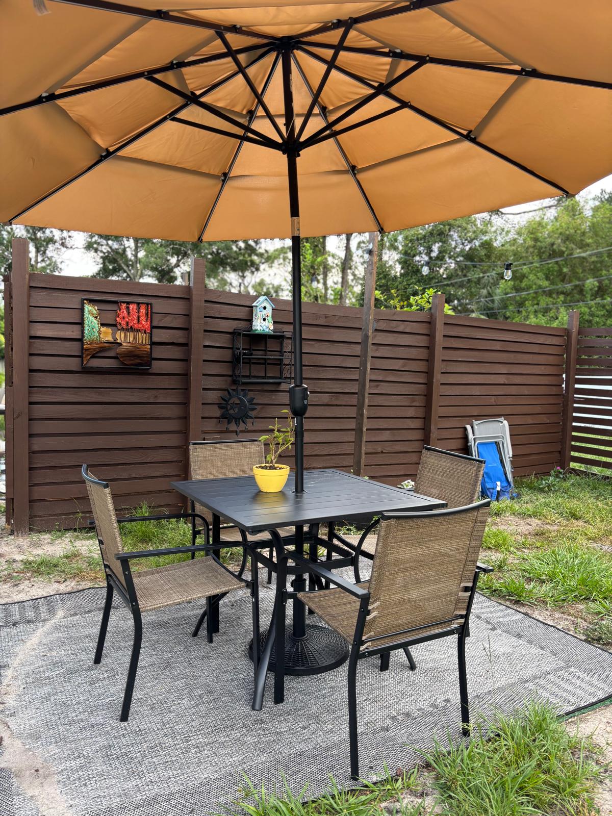 1 bedroom 1 bath guest house, overlooking the pool. Large kitchen, Two large smart T.V.'s, workspace, dining area, living room and bedroom. Queen bed and daybed are in the same room, pull out couch in living room. Outdoor area includes Pool๐, Billiards๐ฑ, Darts๐ฏ, Cornhole๐ฝ๐ณ๏ธ, Horseshoes๐งฒ, Croquet๐คน and Pro Kadima๐. We're 4 minutes to Downtown and 8 minutes to the Beach. Please note we only allow registered guests 21 years old+ on the property, no parties or group gatherings. Thank you.