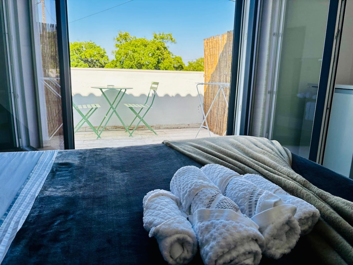 해변에서 8km 거리에 있는 아름다운 스튜디오로, 모두 새롭게 단장되었으며, 간이 주방과 전용 욕실이 있어 2명이 머물기에 충분합니다. 편안함과 안전함으로 게스트를 맞이할 준비가 되어 있습니다. 조용한 장소, 주거 지역, 시장, 약국, 기차역, 카페, 레스토랑이 가깝습니다. 팔멜라 성에서 10분 거리에 있습니다.
