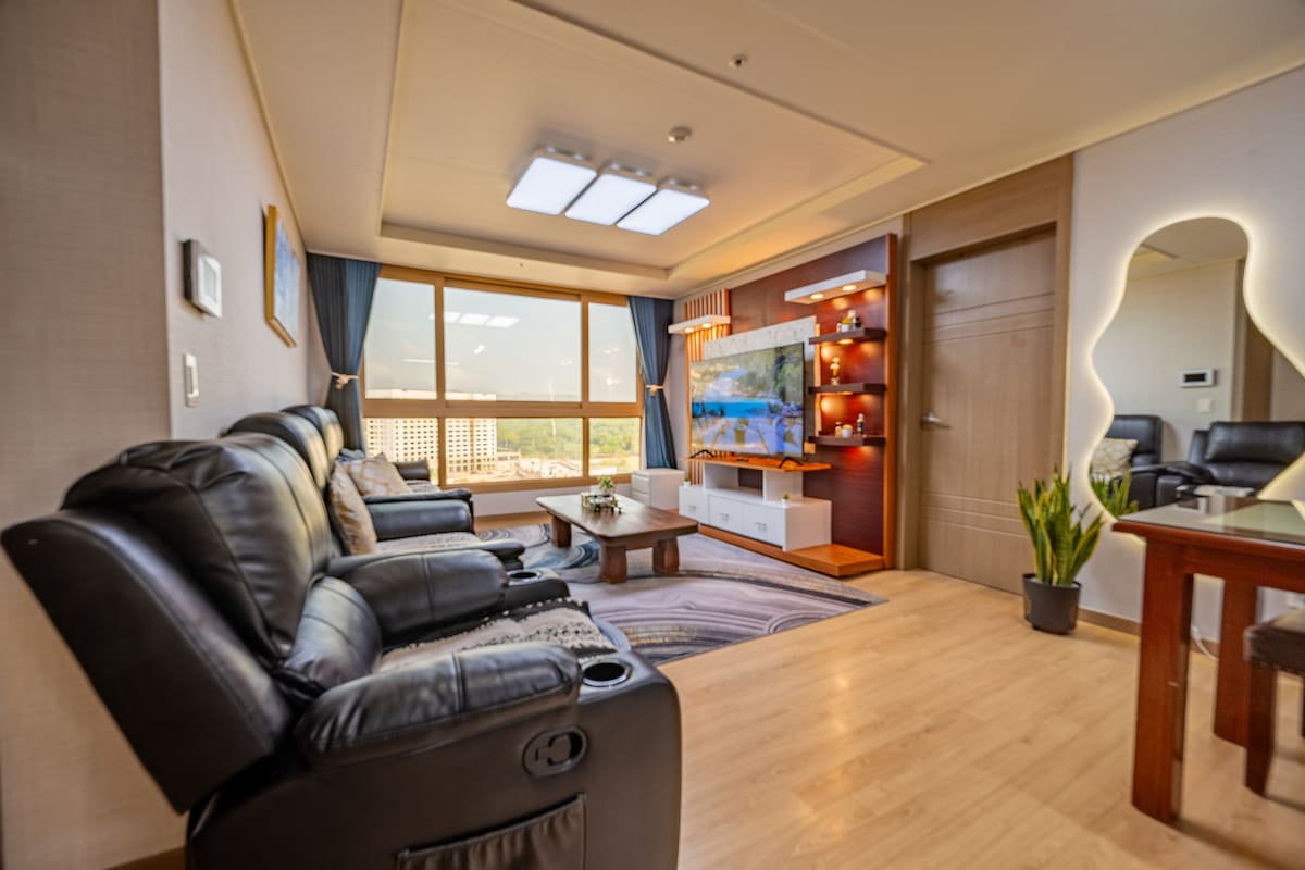 🏠 Everything You Need for a Cozy Stay Living Room: – Comfy lounge chairs – Smart TV with Disney+ access – WiFi – Air-conditioning Dining: – Dining set for meals – Utensils provided – Free filtered water Kitchen: – Induction cooktop – Basic cooking tools – Toaster & kettle – Rice cooker – Refrigerator Bathroom: – Body wash & shampoo – Fresh towels – Hair dryer – Handheld bidet Bedroom: – Cozy double bed – Work desk & chair – Air-conditioning Bonus: – Garment steamer – Free parking