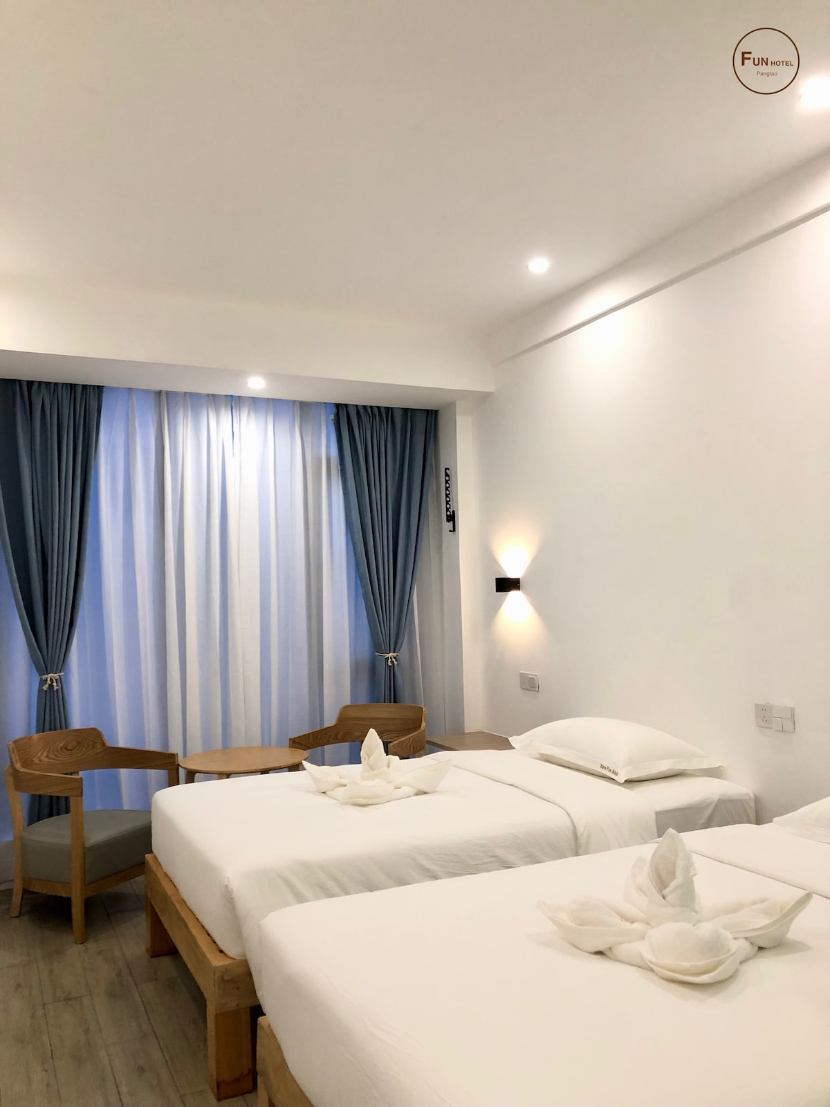 Bright and cozy room with a beach-inspired design, perfect for your island escape! Features two comfortable double beds, air conditioning, and wooden furniture. The charming decor includes sea-themed wall art. Ideal for relaxation or as a base to explore Bohol Island’s pristine beaches and marine life. Enjoy a serene, stylish stay in paradise!