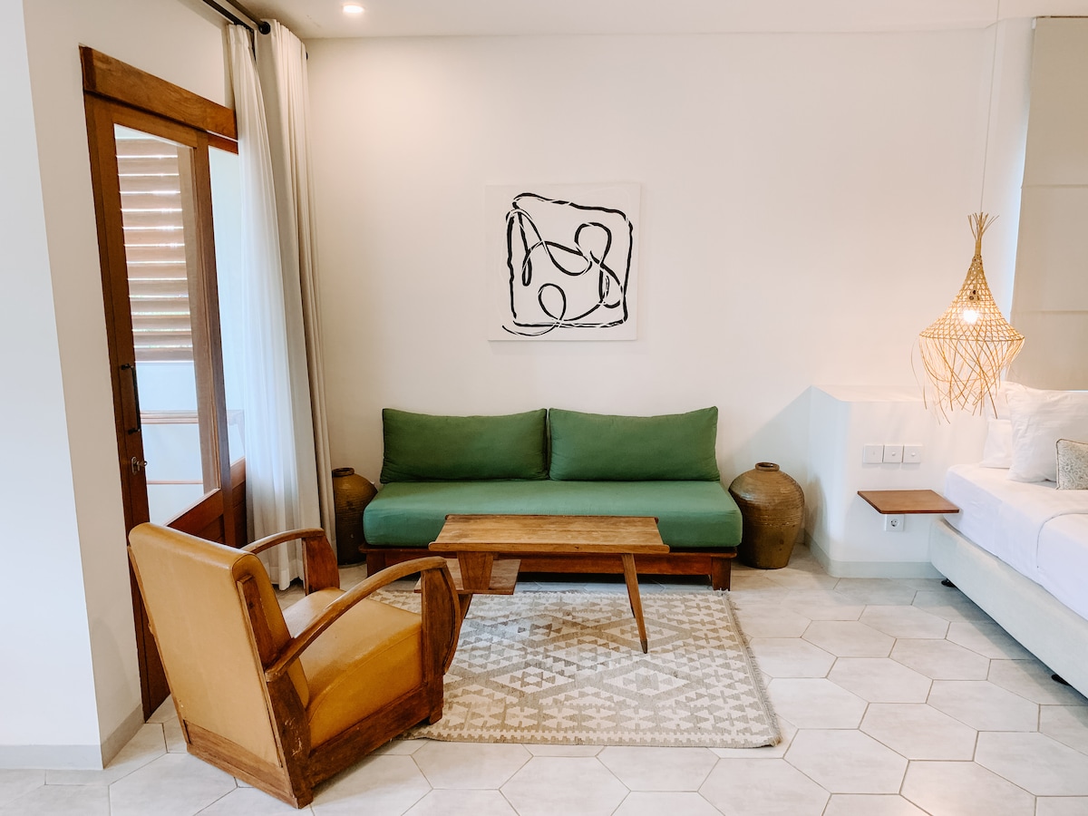 Perfect for travelers looking to relax in the heart of Canggu. Located in a charming boutique hotel,300 m from the ocean, this 1 bdr apartment has 1 en suited bathroom with shower and a big living. Enjoy our facilities: two magnificent swimming pools, a spa, a wellness studio and a coworking space. The hotel bar offers refreshing cocktails. Whether you are here for surfing, wellness or simply to recharge your batteries, our hotel is the perfect place for an unforgettable experience in Canggu