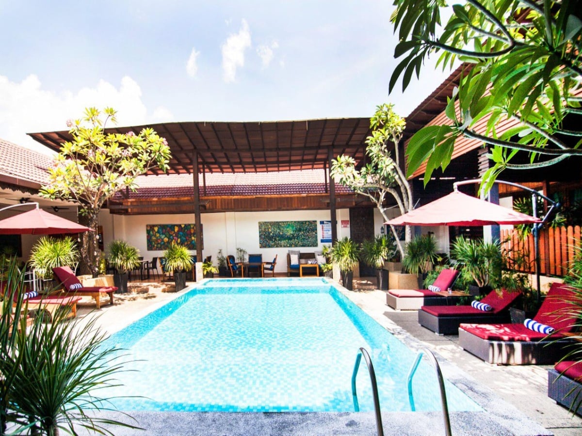 해변까지 도보로 10분 거리에 있는 세낭 스트리트에 위치한 현대적이고 아늑한 게스트하우스에서 편안한 숙박을 즐겨보세요. 커플에게 적합하며, 킹사이즈 침대, 온수 샤워기가 있는 전용 욕실, 체낭강 전망을 감상할 수 있는 발코니, 에어컨, TV, 미니 냉장고, 주전자, 와이파이가 있습니다. 카페, 레스토랑, 상점까지 도보로 갈 수 있는 거리에 위치해 있어 체낭의 모든 것을 쉽게 이용할 수 있습니다.