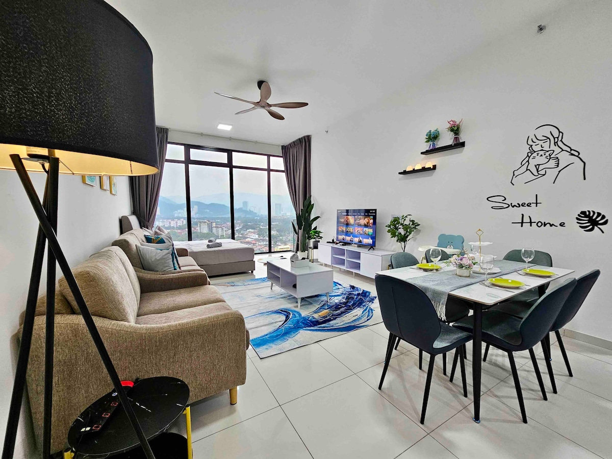 바투 페링히의 해변가 아파트입니다. 해변으로 바로 나가 일몰을 감상하고 밤에는 유명한 불꽃 쇼를 즐기세요. 수영장에서 휴식을 취하거나 새로운 페링기 하트 비치 클럽, 야시장, 현지 음식 명소를 둘러보세요. 커플, 바닷가에서 페낭 휴가를 원하는 가족에게 안성맞춤입니다. * * 예약/문의를 보내기 전에 숙소 이용규칙을 읽어주세요. 최대 인원 6명 (어린이 포함) 운전 시: * 10분 이스케이프 페낭 테마파크 * 조지타운 25분 * 페낭 공항 60분