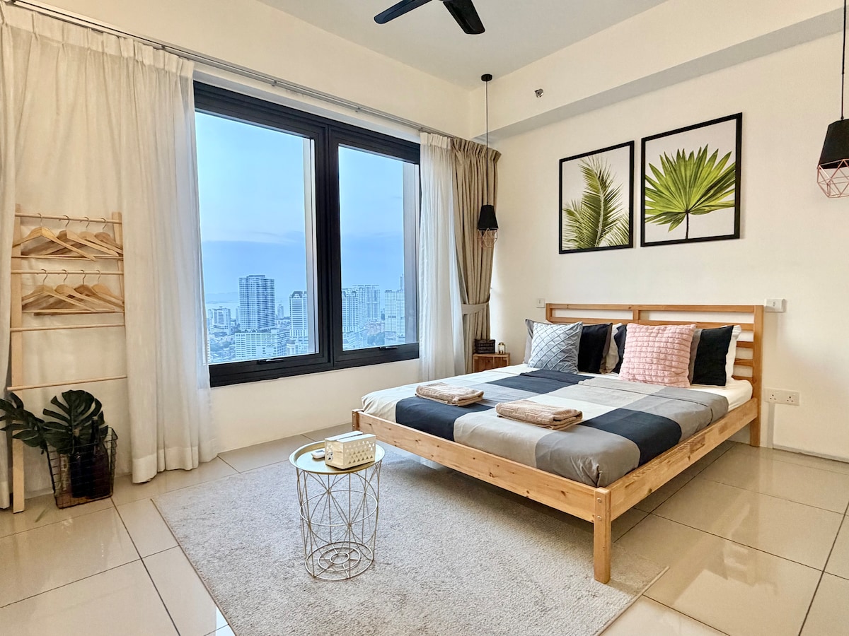 * 페낭 최고의 위치, 거니 드라이브, 최고의 관광지 *듀플렉스 코너 숙소 *놀라운 고층 일출 바다 전망 *편의시설이 완비된 일본 디자이너 숙소 * 스마트TV * 100Mbps 와이파이 *침실, 거실, 식당에서 감상하는 숨 막히는 일출 *호텔, 쇼핑 센터 및 다양한 현지 레스토랑으로 둘러싸여 있습니다. *실내 주차장 1대 무료 *시설에는 실내 수영장, 헬스장, 스카이 라운지가 포함되어 있습니다. * 여유로운 수변 산책