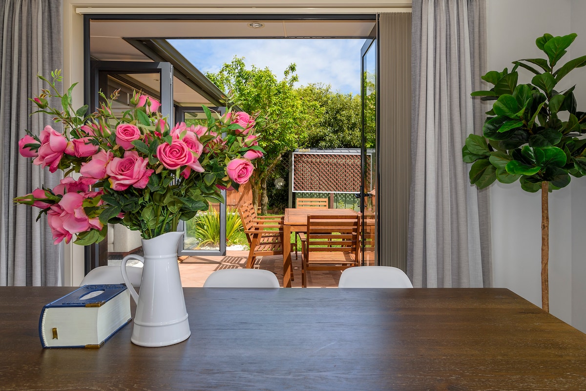 You'll have your own area in our spacious home at the end of a quiet cul de sac with off-street parking, a short distance from the beach, shops & restaurants. You'll be welcomed with a complimentary drink. You have your own entry, sunny bedroom (bed has a near new mattress), bathroom (incl bath, candle & bath oils) & dining room with a continental breakfast provided & coffee from a pod machine. A microwave & toaster are available. Checking in outside of 3-5pm is only by prior approval.