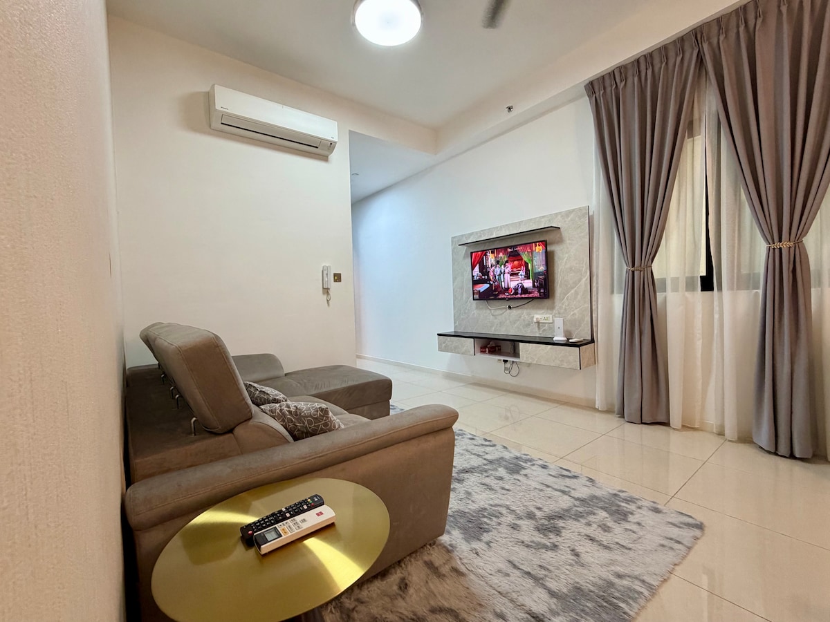 Netflix, Paradigm Mall, stylish, WIFI enabled, large-size 3 bedroom condominium with Gym and Pool in Johor Bahru. 1 minute walk to popular Paradigm Mall boasting cinema, ice skating rink, all major Eateries outlets, Fashion Boutiques, Supermarket, Pubs and Specialty Coffee Joints (ask me for a list!). Paradigm 1 Min walk CIQ 14 Min. Legoland 15 mins Premium Outlets 20 mins 2 parking spaces ( one visitor parking) No cooking allowed