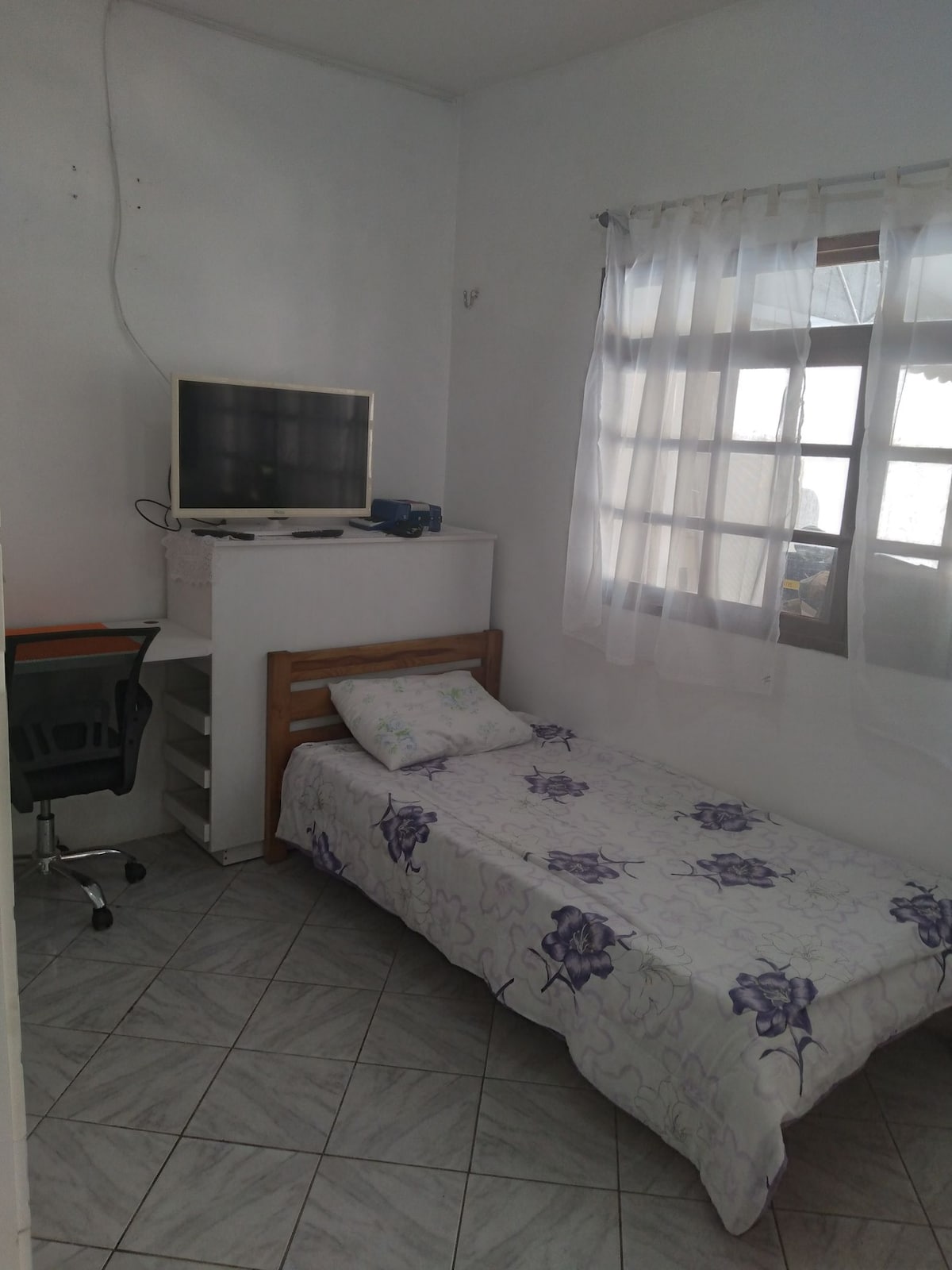 O "Puxadinho" fica dentro do ap onde moro com minha familia.Tem:Entrada independente,privativa e exclusiva,pequeno banheiro dentro do quartinho de 6m² box cortina de tecido,tem uma cozinha exclusiva compacta para refeicoes rapidas(microondas,frigobar, fogao a gás e pia).Colchao box confortável,roupas de cama e toalhas.A Regra mais importante:"Não aceitamos visitas aos hóspedes".Comercio variado,farmacia e academia a 100 passos.Estacionamento publico debaixo do "Puxadinho".Área externa arborizada