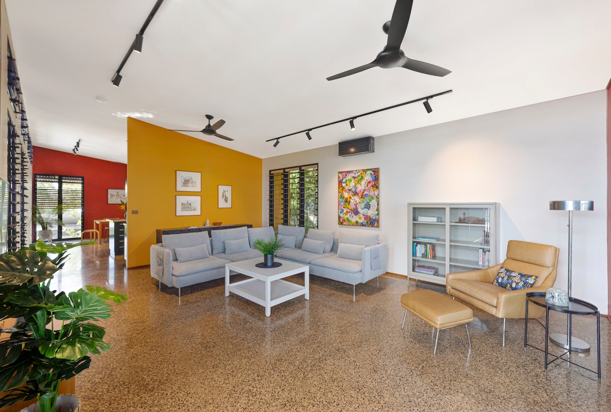 현대적인 독립형, 완비된 에어컨, 광택이 나는 바닥이 있는 개방형 숙소. 커다란 열대 그늘진 수영장과 잎이 무성한 녹색 주변. 수영장은 언제든지 이용하실 수 있습니다. 유명한 토요일 파라프 마켓과 파랍 쇼핑 빌리지에서 100미터 거리에 있습니다. 더 빌리지는 현지 식료품점, 약국, 레스토랑, 커피숍, 테이크아웃, 베이커리, 우체국 등을 제공합니다. 패니 베이 터프 클럽, 민딜 비치, 세일링 클럽, 식물원 및 대중 교통의 중심지. 셀프 체크인 무료주차