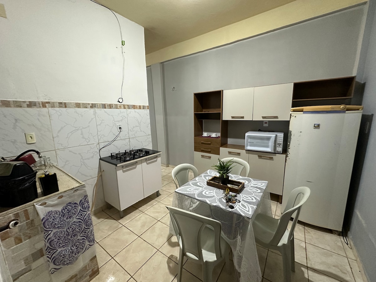 Acomodação aconchegante e funcional no centro de Parauapebas. Conta com ar-condicionado, chuveiro elétrico, cama de casal e sofá-cama, frigobar, fogão de indução, micro-ondas, utensílios de cozinha, panela elétrica, pipoqueira, tanquinho e guarda-roupa. Próxima a bares, restaurantes, comércios, quadra de beach tennis, UPA e parada de ônibus. Ideal para quem busca conforto, praticidade e boa localização.