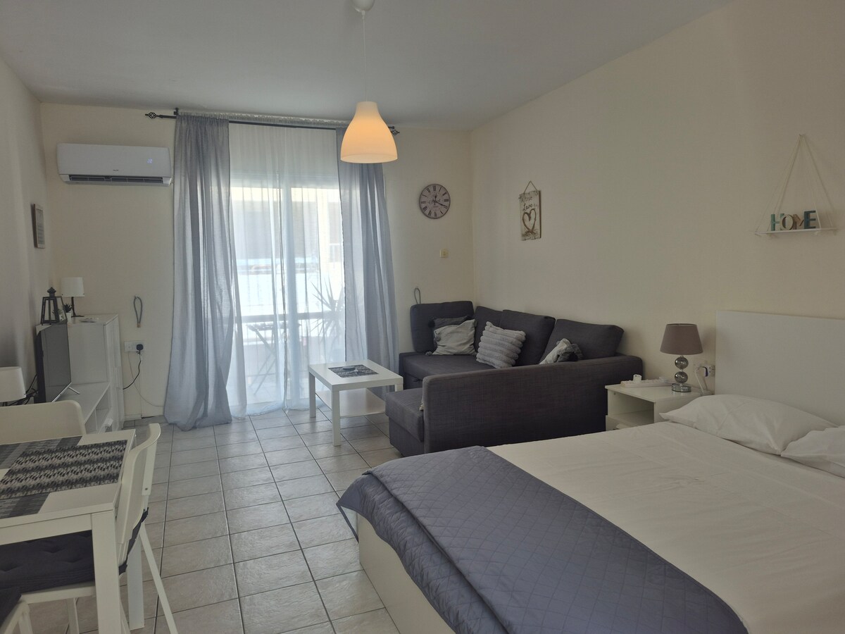 Комфортабельный апартамент-студия в самом сердце Айя Напы и рядом со всей развитой инфраструктурой, но в то же время тишину и спокойствие Вы ощутите в течение Вашего отдыха. Best location!!! Comfortable studio-apartment with kitchen facilities , located in the center of Ayia Napa with free wi-fi. Close to restaurants, 2min walk to Bar Street, 5-10min wd to the nearst beach,public transport, nightlife,family activities. Ideal for couples,singles and families.