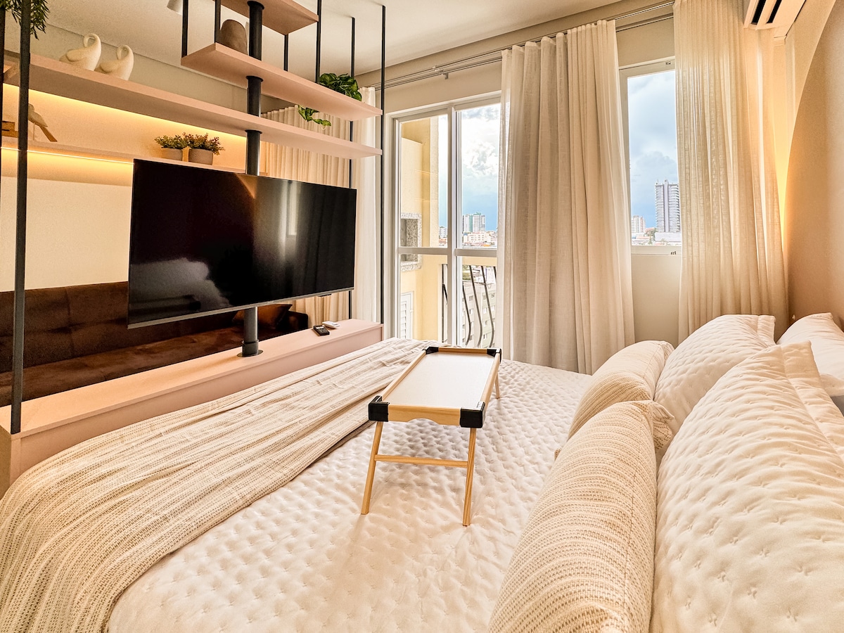 아름다운 전망을 자랑하는 현대적인 아파트로, 특히 일몰을 감상할 수 있습니다. 훌륭한 위치, 약국, 헬스장, UPA, 베이커리, 과일 가게에서 가깝습니다. 주차가 포함되어 있습니다. 콘도미니엄은 시장과 반려동물 공간을 제공합니다. 재활용을 우선시하며, 특정 쓰레기통을 사용합니다. 거실과 침실에 TV가 있으며, 재미를 더하기 위해 닌텐도가 있습니다. 홈 오피스는 추가 화면, 마우스 패드, 게이머 의자가 갖춰져 있습니다. 거실에는 에어컨(냉방)이, 침실에는 선풍기/난방기가 설치되어 있습니다.