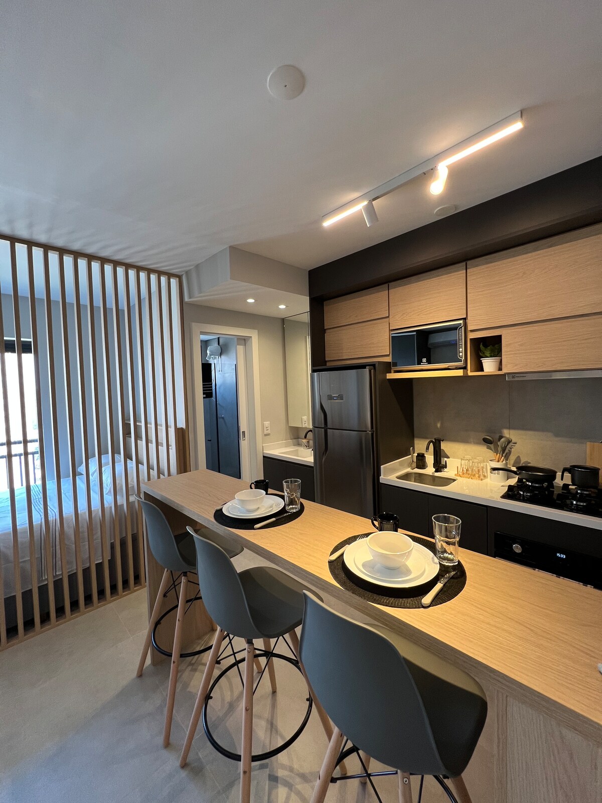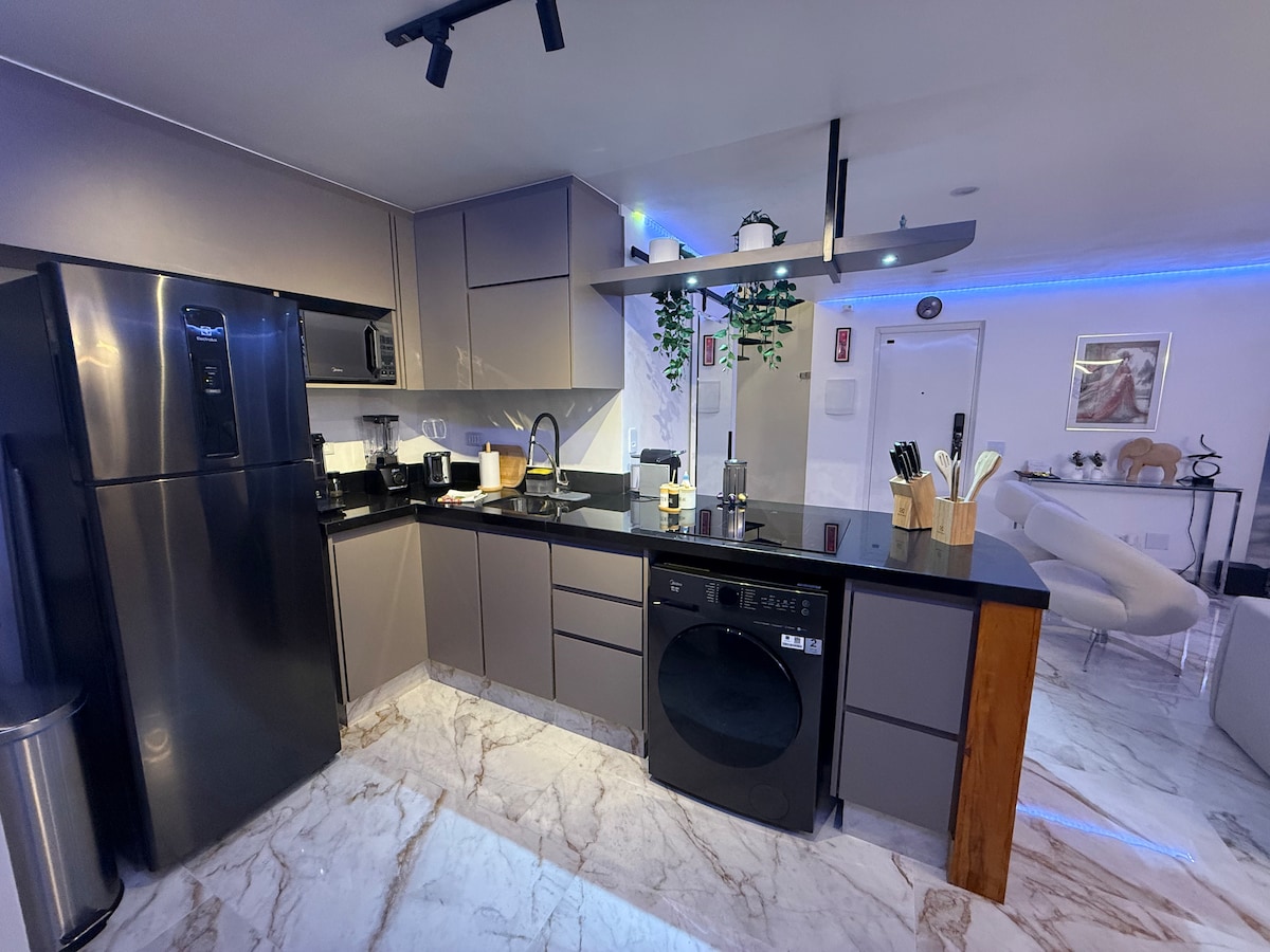 빌라 노바 콘세이사오의 최고 지점에 있는 스튜디오. 주방용품(네스프레소, 전자레인지, 쿡탑, 복고풍 냉장고)이 완비되어 있습니다. 스마트 TV, 에어컨. 침구 세트, 이불, 이불, 수건. 식탁/업무용 테이블. 빛이 잘 드는 통풍이 잘 되는 베란다. 옷장. 셀프 체크인. 자율 시장, 피트니스 공간, 자쿠지, 바비큐, 야외 미식 공간. 레스토랑이 가득한 동네. 이비라푸에라 공원 근처, 병원. 빌라 노바 스타