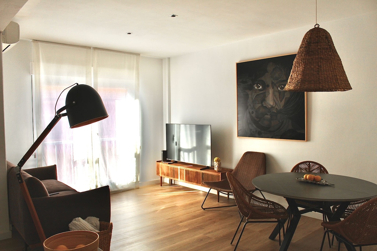 This beautiful, spacious and luminous 110 sqm loft is located in the heart of Alicante’s historic center with views over the old town. We renovated and designed this place respecting the traditional ways to build at the time, with limestone and wooden beams, while offering all the amenities of a modern apartment and a little bit of luxury. The beach is a 5 minutes (350m) walk away and the numerous nearby bars and restaurants invite you to enjoy the typical Mediterranean vibes of the old town.