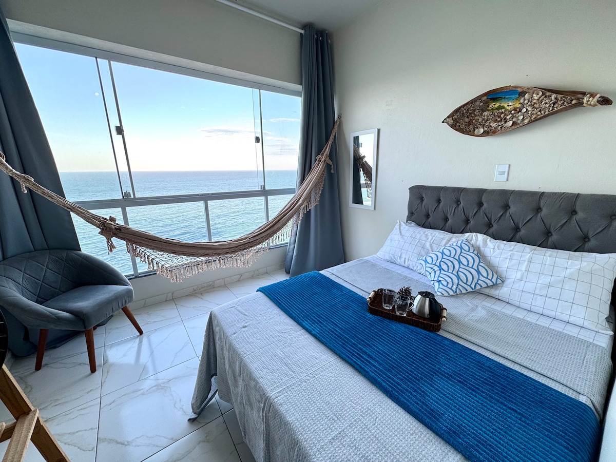 Conforto, luxo e tranquilidade. Isso você encontra em nosso apartamento que foi cuidadosamente projetado para lhe proporcionar uma experiência inesquecível com o MAR. Nesse ambiente arquitetônico clean, moderno, tecnológico e sofisticado você poderá usufruir da sensação de estar em um navio em alto mar. Você merece ter essa experiência! Sinta o cheirinho do churrasco com essa bela vista enquanto relaxa em nosso balanço panorâmico. Você não vai se arrepender!