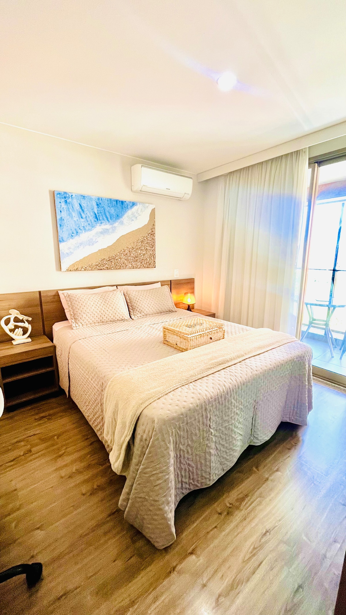 Vista Mar! Vista cinematográfica e todas as comodidades de um resort a beira mar. Próximo aos melhores restaurantes da região, decoração moderna e totalmente climatizado. O flat está no Villa Del Sol Residences, de frente para a praia do Pontal/Recreio e ao lado do Ricco Point. 500Mb de wifi. Nossos hospedes podem contar com: piscina adulto e infantil, piscina aquecida, academia, sauna, restaurante, lavanderia, estacionamento, recepção 24h, etc... SURF, BANHO DE MAR, PAZ E BOAS ENERGIAS
