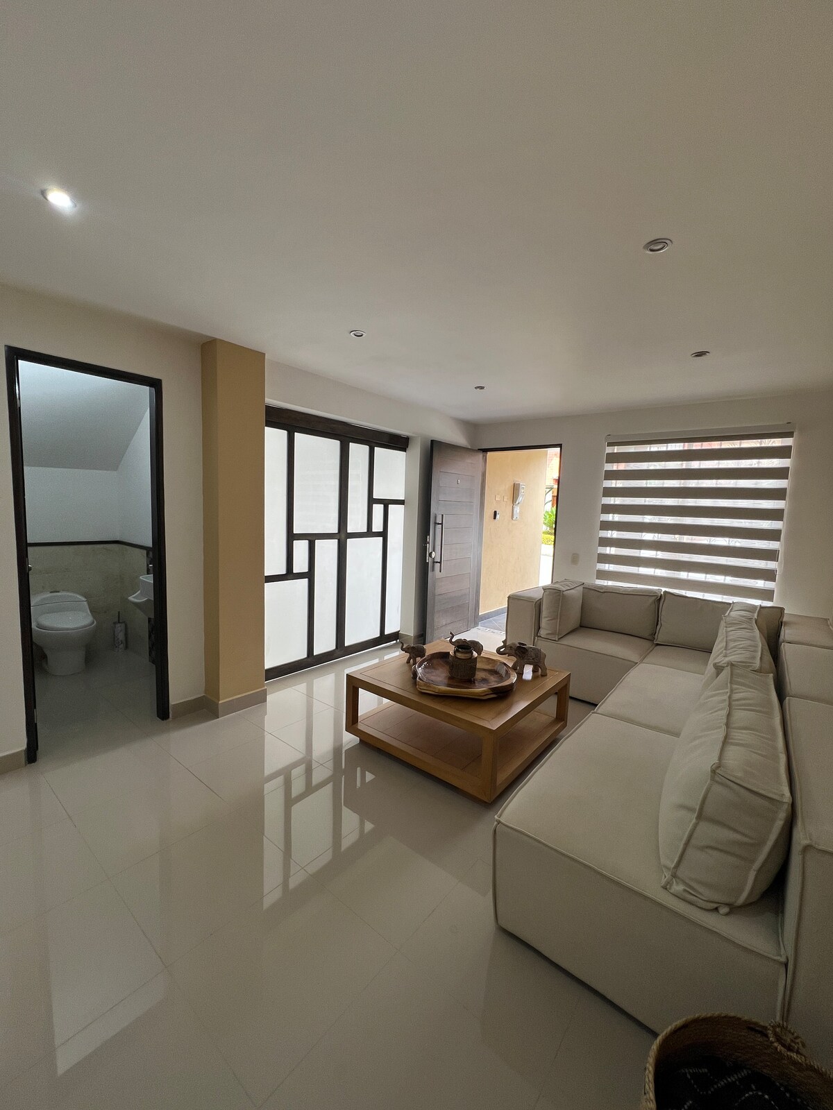 Fascinante apartamento de full Comfort, no apto para fiestas. La combinación perfecta entre el lujo y comodidad al ingresar te recibe una calidad sala-comedor destacando cada detalle de decoración, una cocina full equipada para satisfacer tus gustos. Una vista amena, 2 habitaciones confortables. La suite principal cuenta con baño, vestier y una espectacular cama queen. La habitación de huéspedes cuenta con una hermosa cama semi-doble y cama sencilla vigilancia 24 hr parqueadero privado y mas.