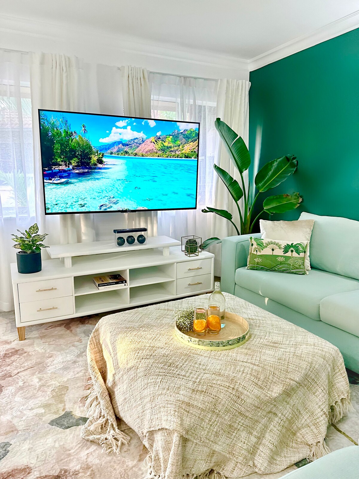 Tropical Paradise is a cozy one-bedroom apartment that you can enjoy, complete with a well-equipped kitchen and an additional sleeping arrangement in the living room, making it perfect for families. You’ll love the two TVs, air conditioning, ceiling fans, and unlimited high-speed Wi-Fi. Plus, the apartment has laundry facilities and plenty of great amenities to ensure you feel right at home during your stay.