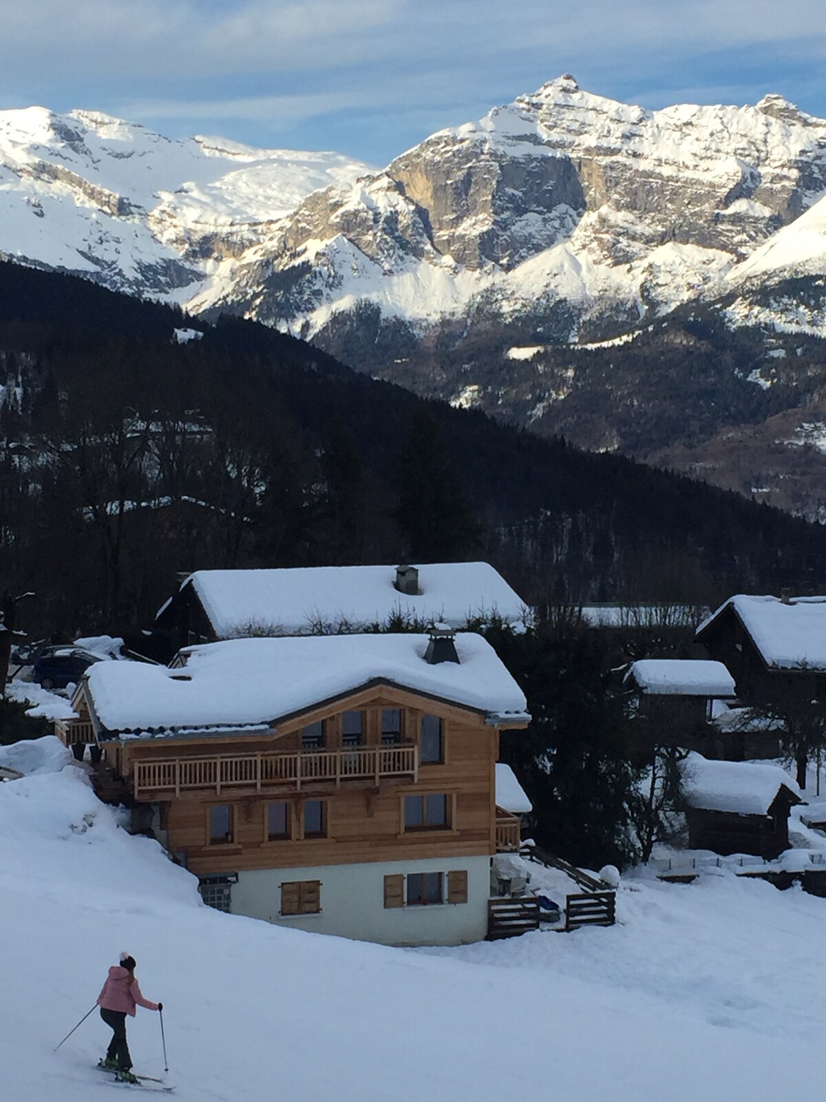 샬레는 알프스 스키 월드컵을 개최하는 전설적인 칸다르 스키 슬로프의 자연 속에 위치하고 있으며 고도는 1200m에 달합니다. 40m2의 테라스가 있으며 이웃이 없어 이 곳의 평온함과 몽블랑 산맥, 아이귈 뒤 미디, 샤모니 계곡의 장관을 이루는 전망을 즐길 수 있습니다. 여러분이 여름이든 겨울이든 즐거운 시간을 보내실 수 있도록 샬레 아래층을 멋지게 꾸며 모든 편의시설을 갖추었습니다.