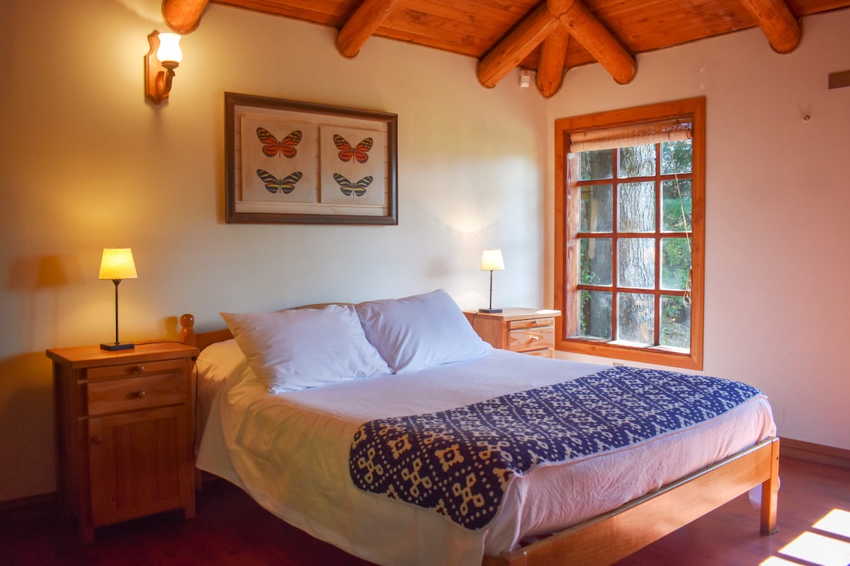 알레그리아는 아늑한 60 평방 미터의 로프트로 칼리 숲과 맞닿아 있으며, 넓은 욕조, 냉동고, 냉장고, 주방, 전자레인지, 편안한 바 테이블, 호수 전망의 거실과 킹사이즈 침대와 대형 스크린 TV가 있는 아늑한 침실을 갖추고 있습니다. 아름다운 발코니에서 호수 전망을 즐길 수 있습니다. 10개월 이하의 유아의 경우, 거실에 의자 2개만 놓고 아기 침대를 추가합니다. 1월과 2월에는 최소 7일 이상의 숙박을 시도해 주시면 감사하겠습니다. 2헥타르의 부지는 이 지역의 훌륭한 풍경과 자연 아름다움의 중심부에 위치하고 있지만, 그들 사이의 상당한 거리는 차량을 보유하거나 우리를 구분하는 도로와 대중 승객 교통과 2.5km를 걸어야 할 것을 제안합니다. 일정이 맞으시면 기꺼이 데리러 가거나 픽업해 드리겠습니다. 알레그리아에는 아름다운 호수 전망을 자랑하는 햇살이 가득한 테라스 정원이 있으며, 미국식 그릴, 야외 테이블 및 의자가 갖춰져 있습니다. 알레그리아에는 간이 아기 침대를 추가할 수 있는 공간이 있습니다. 예약 시 알려주시면 됩니다. 반도 입구에는 카페와 일반 상점이 있는 작은 쇼핑 센터가 있습니다. 노 및 카약을 대여할 수 있는 요트 클럽도 있고, 주변 호수 공원의 전망을 감상할 수 있는 캄파나리오 언덕도 있습니다. 약 600m 거리에 아름답고 넓은 팝라 해변이 있습니다. 해변이 아이들에게 적합합니다. 차량이 있으면 좋지만, 더 큰 여행을 하지 않고 휴식과 평화를 찾아 저희를 찾아 주시거나 버스와 트레킹을 하시는 분들을 위해 기꺼이 여러분을 태워 드리고 터미널로 모셔다 드리겠습니다. 바릴로체와 야오 야오 사이의 일상적인 이동을 위해 20번 버스 노선이 지속적으로 운행되고 있으며, 이 반도의 입구에는 이 노선의 20km 지점에 정류장이 있습니다. 바릴로체에서 대중교통으로 이동하는 데는 40분이 소요됩니다. 저희는 평화롭게 도착하는 고객님들이 평화를 찾는다는 것을 알게 되었습니다. 우리는 사랑에 빠진 사람들이 더 사랑에 빠지는 것을 발견했습니다. 행복을 가지고 온 사람들은 주변 사람들에게 행복을 전염시키고 더 행복해지는 것을 발견했습니다.