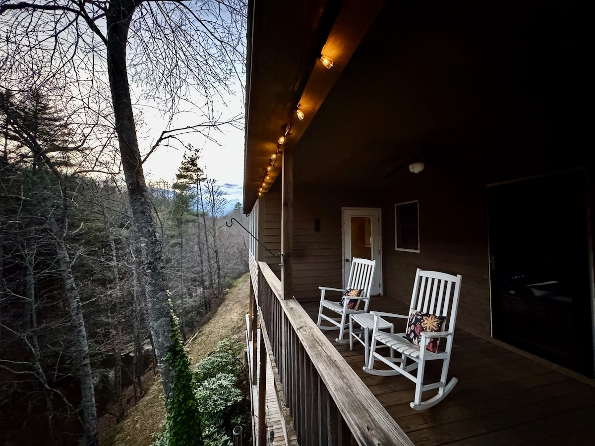 블루 리지 파크웨이에서 불과 5마일 거리에 있는 아늑한 산속 휴양지인 울와인에 있는 오두막으로 떠나보세요. 나무에 자리 잡은 이 평화로운 은신처에는 온수 욕조, 현관 스윙 침대, 줄 조명이 있는 화덕, 아치형 천장과 석조 벽난로가 있는 따뜻하고 매력적인 인테리어가 있습니다. 빠른 와이파이, 로프트 침실 오아시스, 완비된 주방, 아름다운 야외 공간(포치 스윙 침대와 온수 욕조!)을 즐기세요. 휴식을 취하고, 탐험하고, 긴장을 풀기에 완벽합니다.