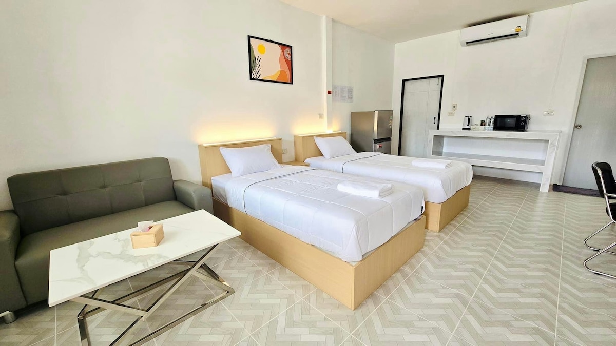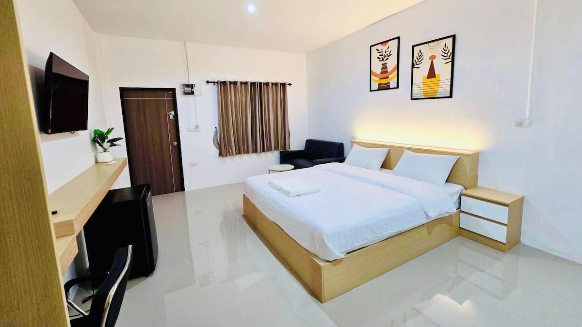 Escape to Tropical Luxury: Deluxe Room at Pooh Beach Resort & Spa Experience the perfect blend of coastal serenity and modern luxury. Nestled just a 3-minute walk (210 meters) from the golden sands of Jomtien Beach, our Deluxe Room offers a spacious, soundproofed sanctuary for travelers looking to experience the best of Pattaya in a peaceful, upscale environment.