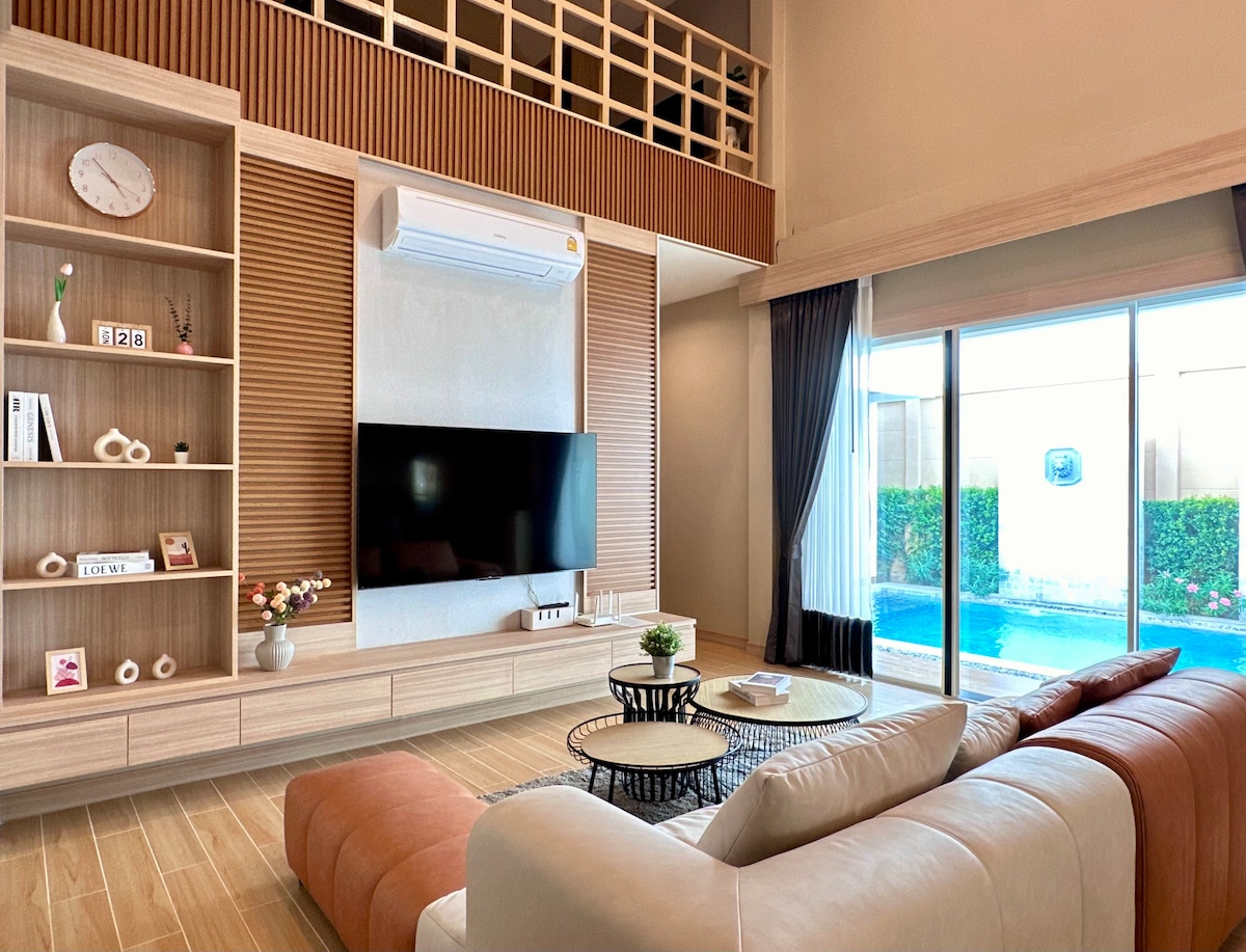 🌿 세련된 풀 빌라 휴양지. - 침실 3개, 욕실 3.5개 (킹사이즈 침대) -전용 욕실 - 유틸리티 포함 - 분사식 스파가 있는 수영장 - 수영장 청소 (일주일에 2번) -와이파이 (하이 스피드) -스마트 TV (모든 객실 내) 암막커튼 -세탁기/건조기 - 완비된 주방 -바비큐 그릴(500 THB) - 깨끗한 수건 - 샴푸/컨디셔너/비누 -7-11 및 로터스 근처 -좀티엔 해변까지 차로 단거리(20~25분) 가족 휴가, 로맨틱한 휴양지, 장기 숙박에❤️ 안성맞춤입니다. ⭐️특별 주간 및 월간 요금 지금 예약하기❗️