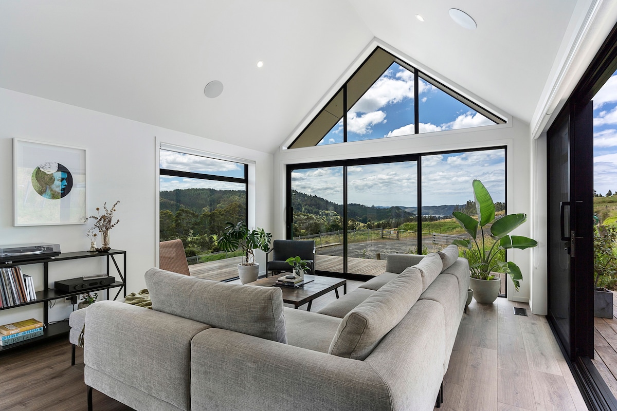 코로만델의 고급 통나무집. 멋진 바다 전망.