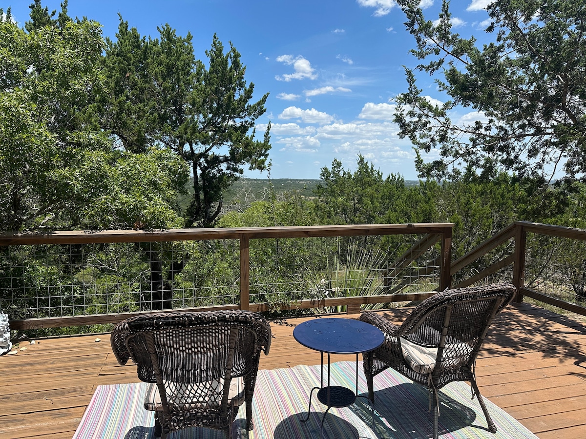 On forty acres between Johnson City and Pedernales Falls Park, the cabin offers a private light filled space in the heart of all the fun of the Texas Hill Country. Only 3 miles from Pedernales Falls Park, Amustus Ranch is near all that the Hill Country has to offer. Nature adventures, wine tasting,and more are all within a short drive of this secluded spot. And, on the breezy deck you can enjoy star gazing. This property is not suitable for children under five years of age.